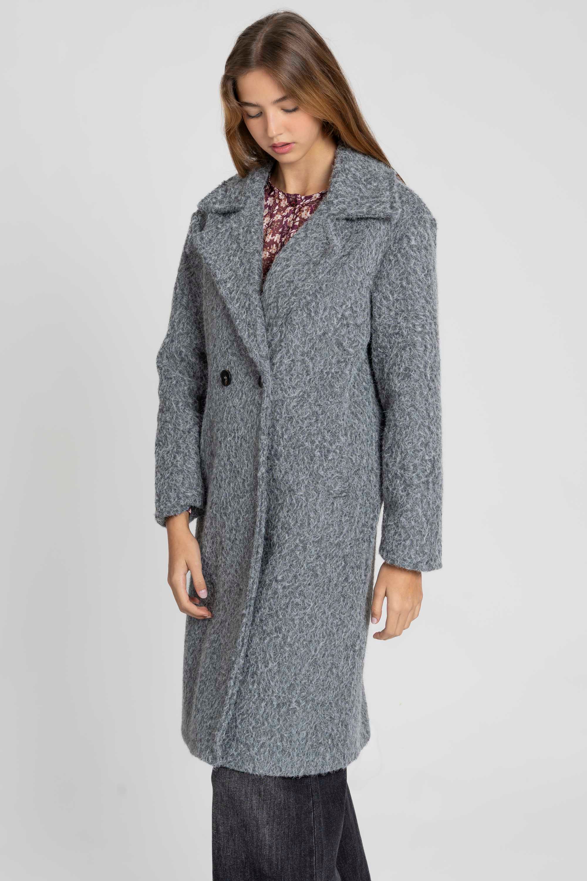 Tejido efecto pelo. Cuello solapa. Manga larga. Bolsillos laterales. Cierre de botones. Interior forrado.Composición: 100% PoliésterHecho en Italia