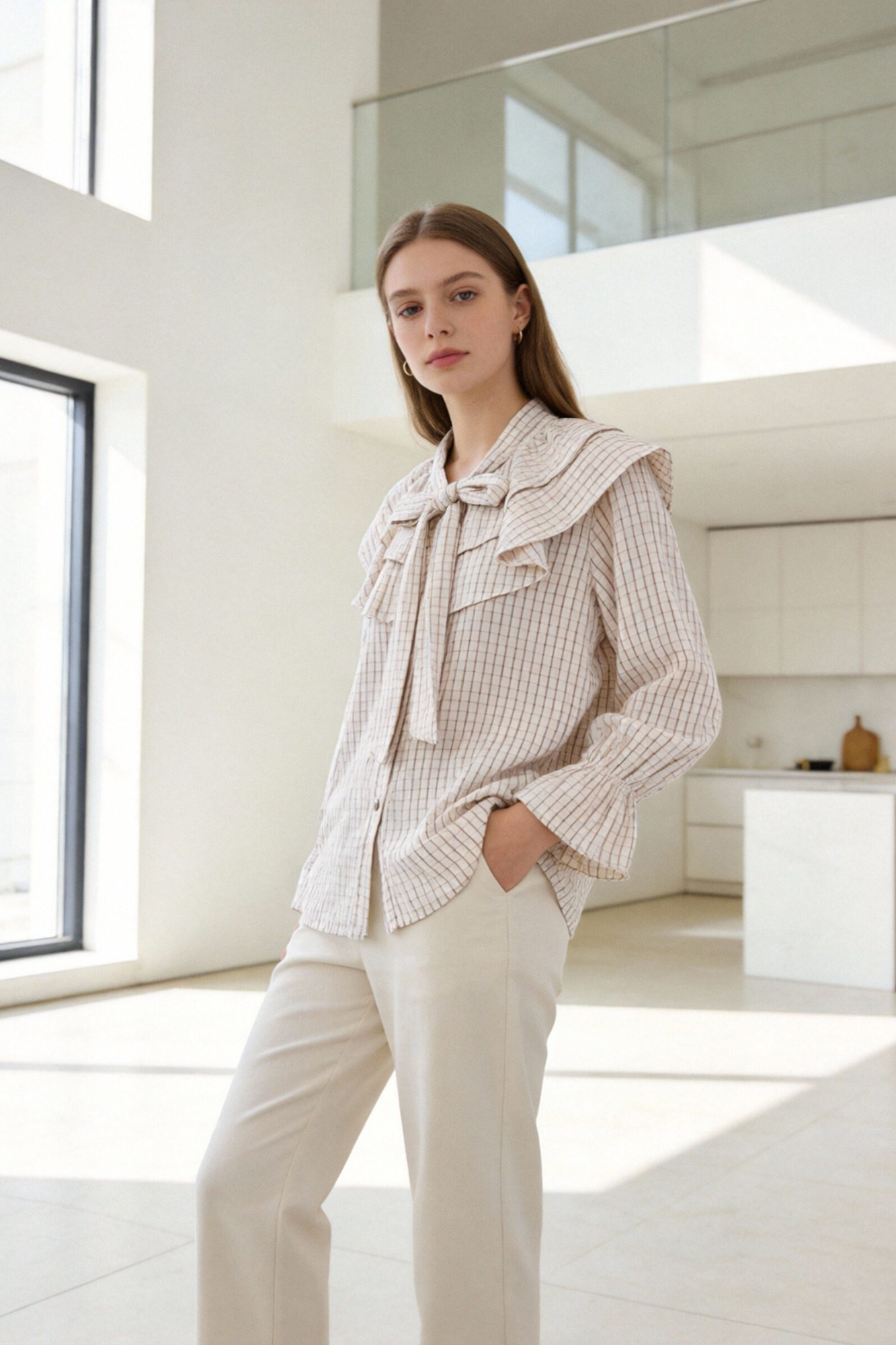 Tejido fluido. Cuello redondo con lazada. Manga larga. Detalle de capas. Cierre con botones. Composición: 49% Poliester, 30% Lyocell, 21% Viscosa Hecho...