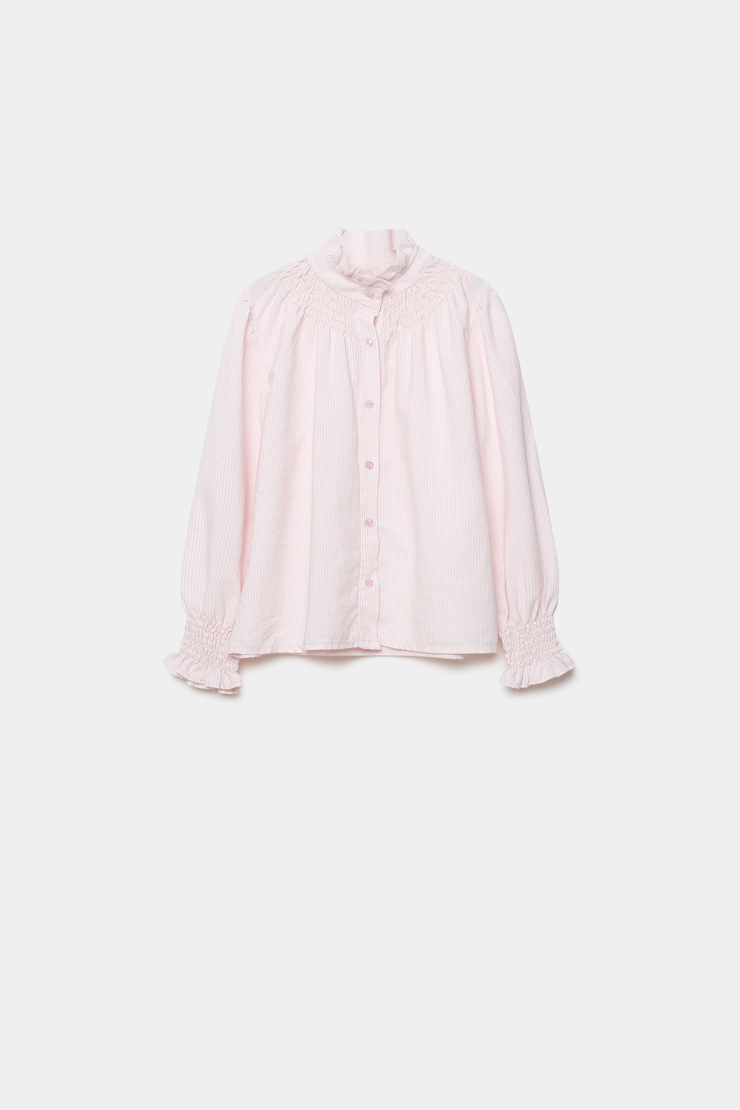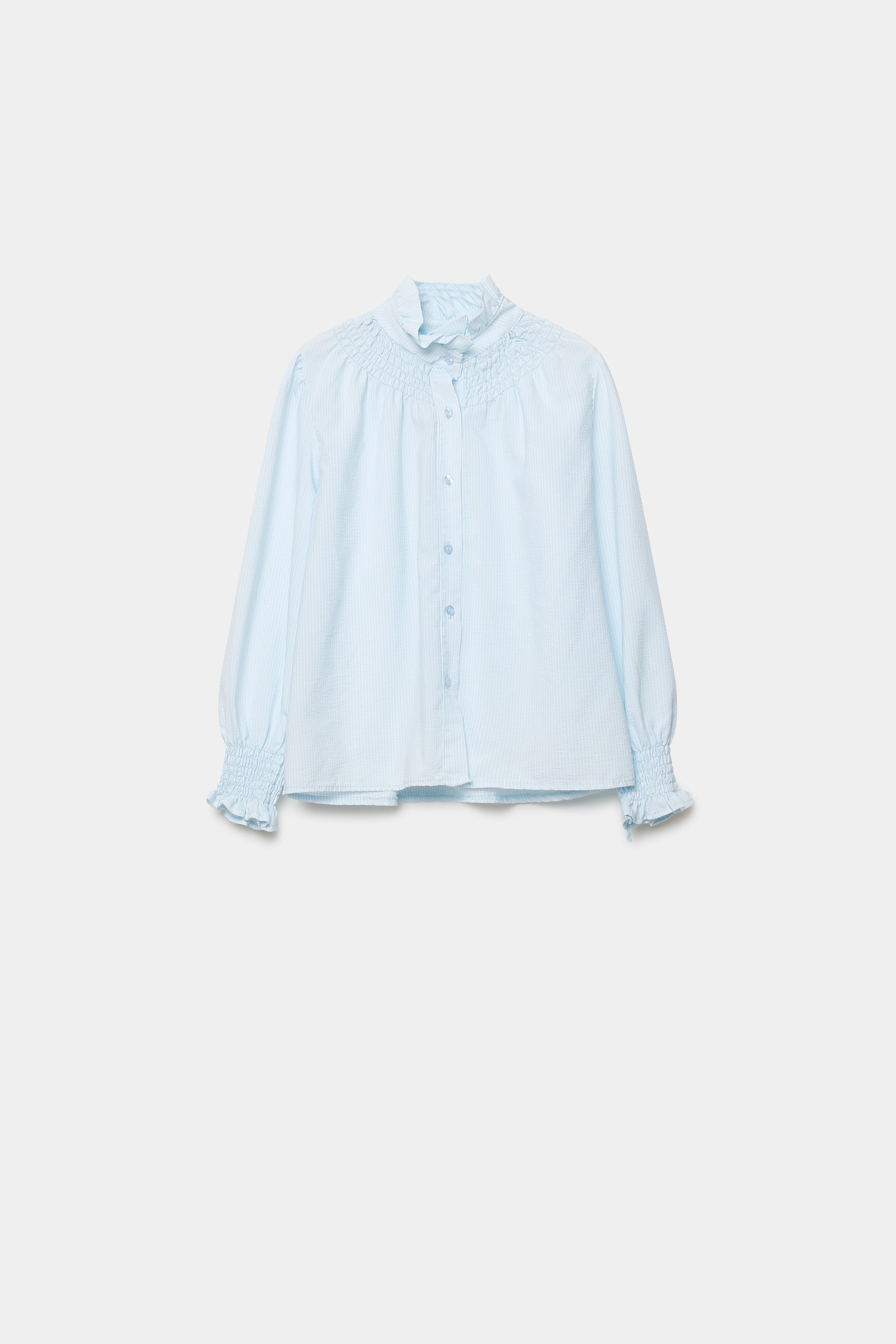 Tejido mezcla de algodón. Cuello redondo subido. Manga larga. Cierre con botones. Composición: 55% Algodón, 45% PoliesterHecho en Italia