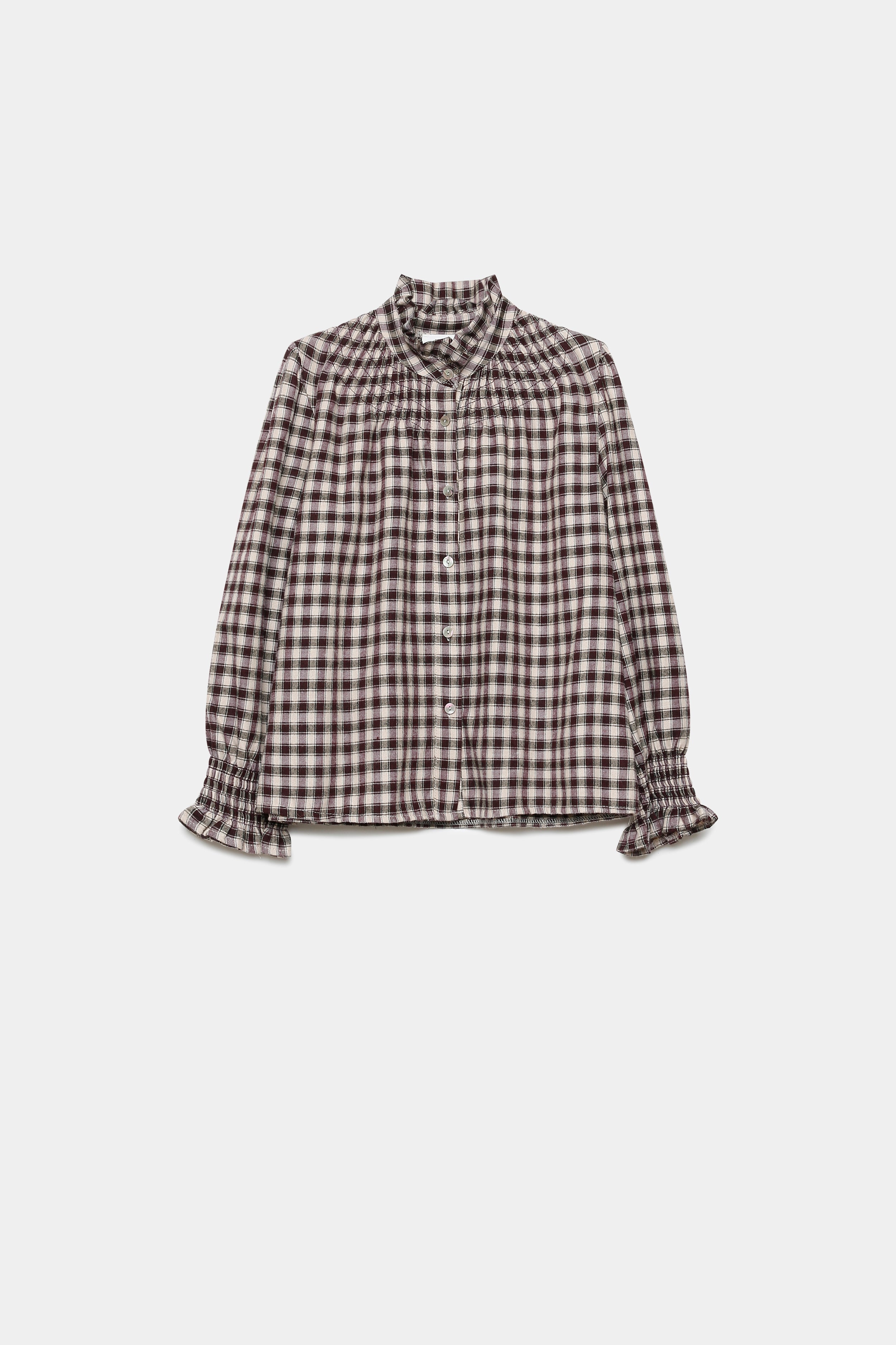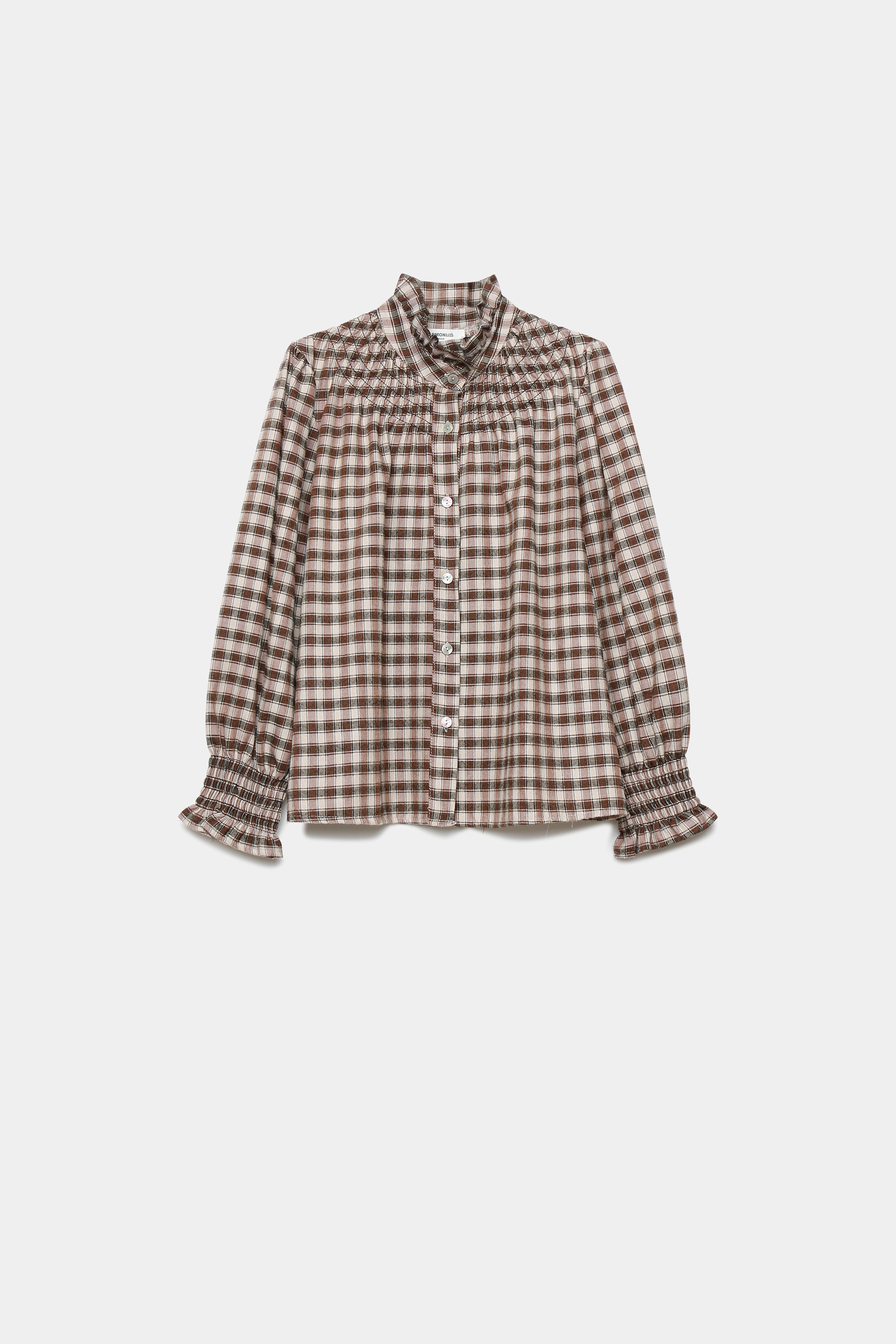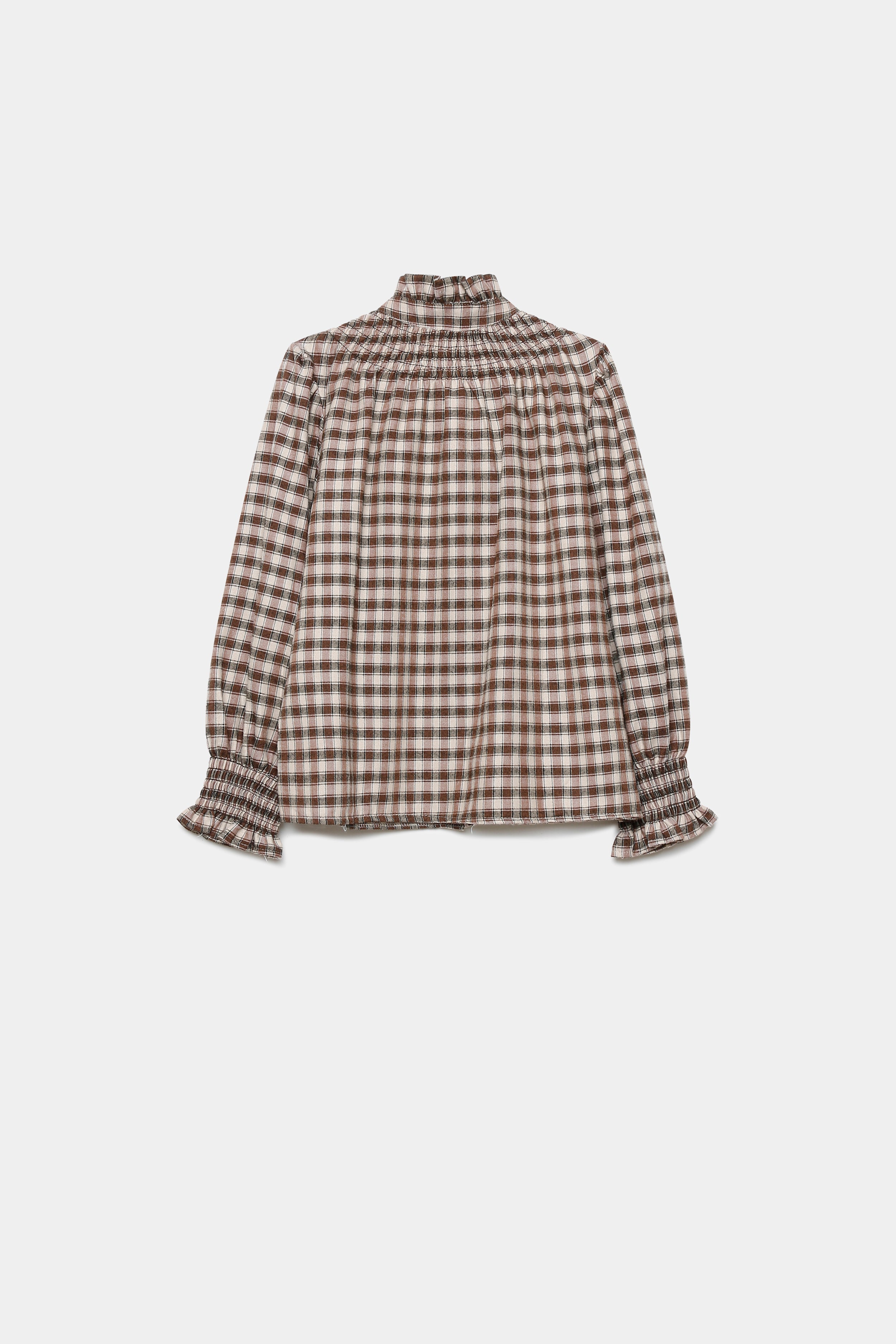 Tejido estampado cuadros. Cuello redondo subido. Manga larga. Cierre con botones. Composición: 65% Poliéster, 35% ViscosaHecho en Italia