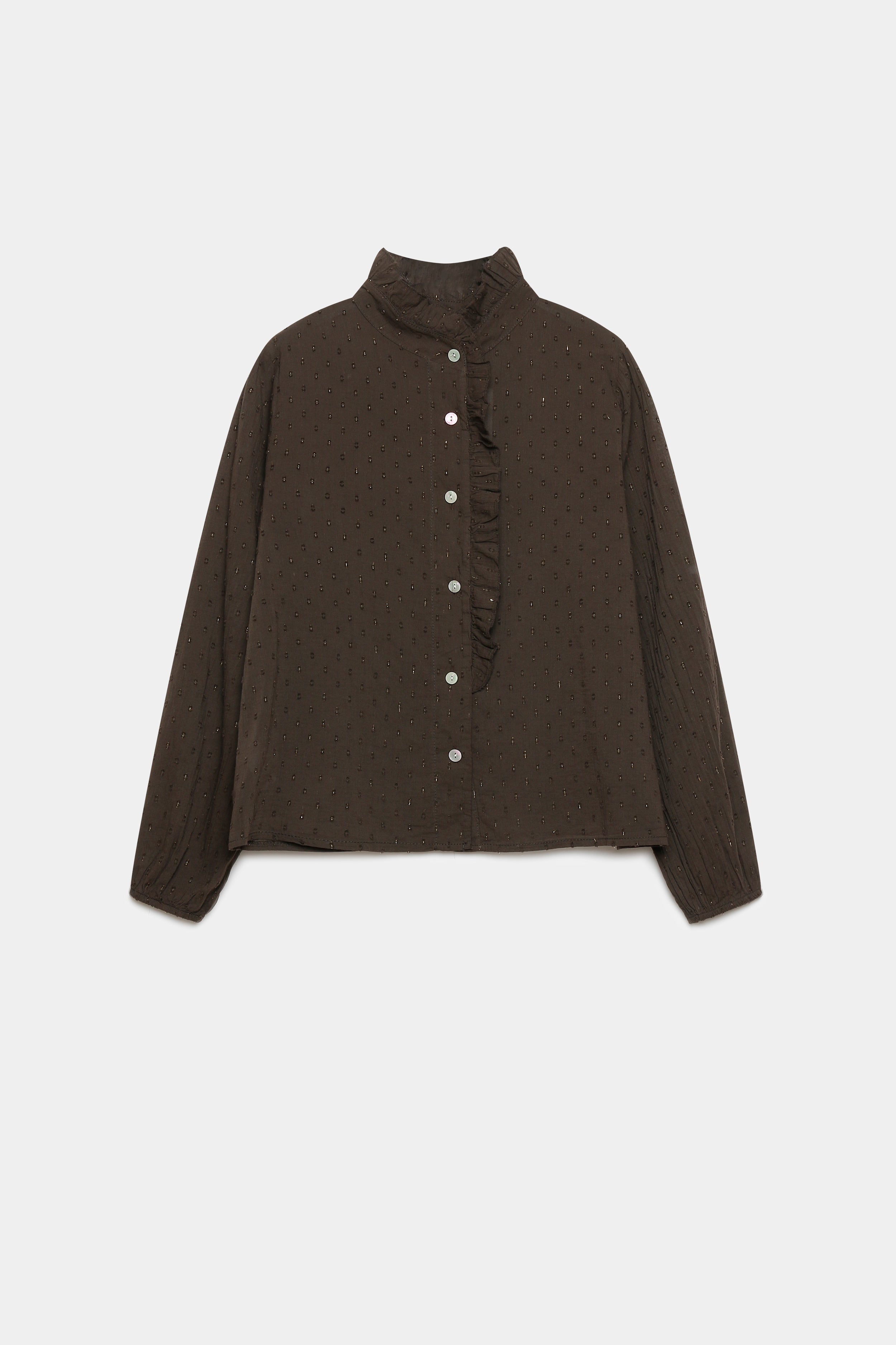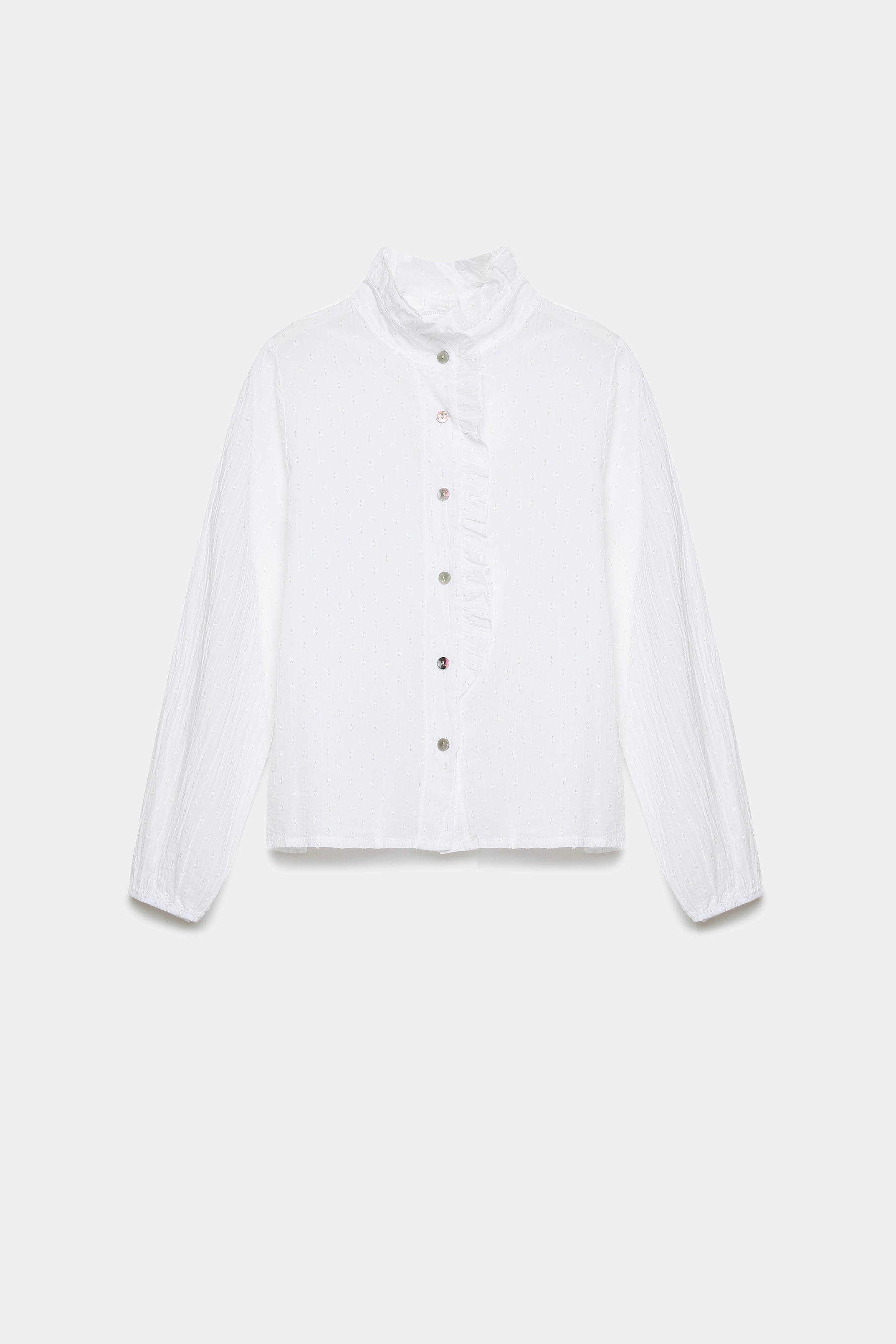 Tejido plumeti. Cuello redondo subido. Manga larga. Cierre de botones. Detalle de brillos. Composición: 100% AlgodónHecho en Italia