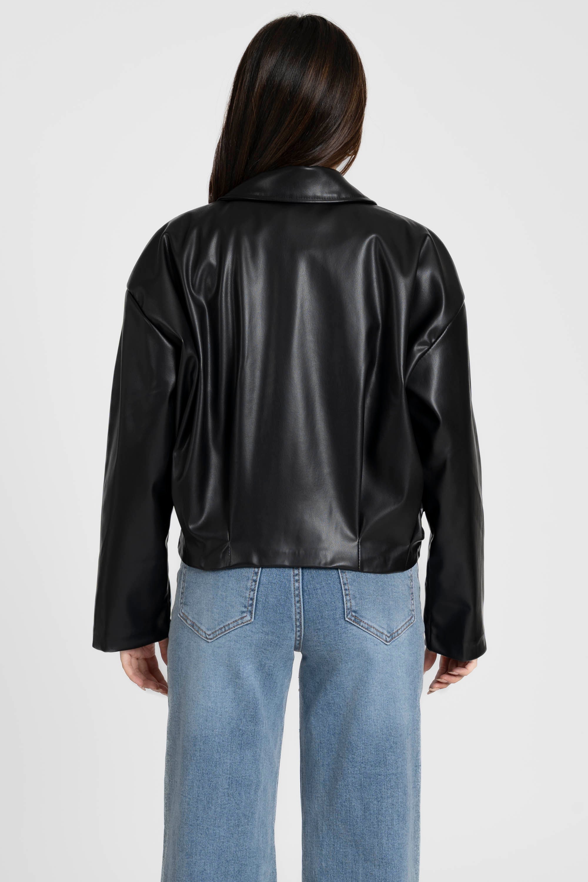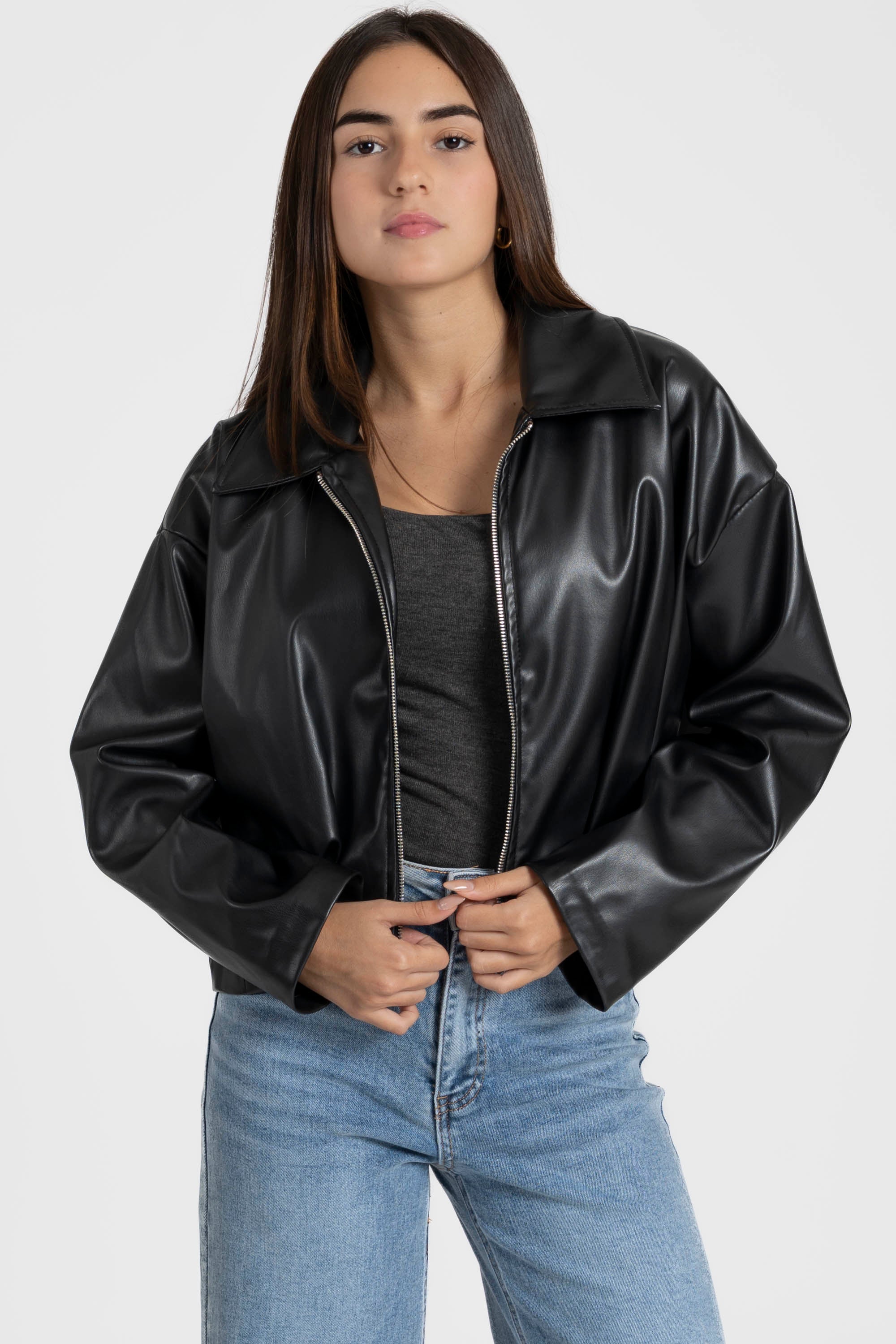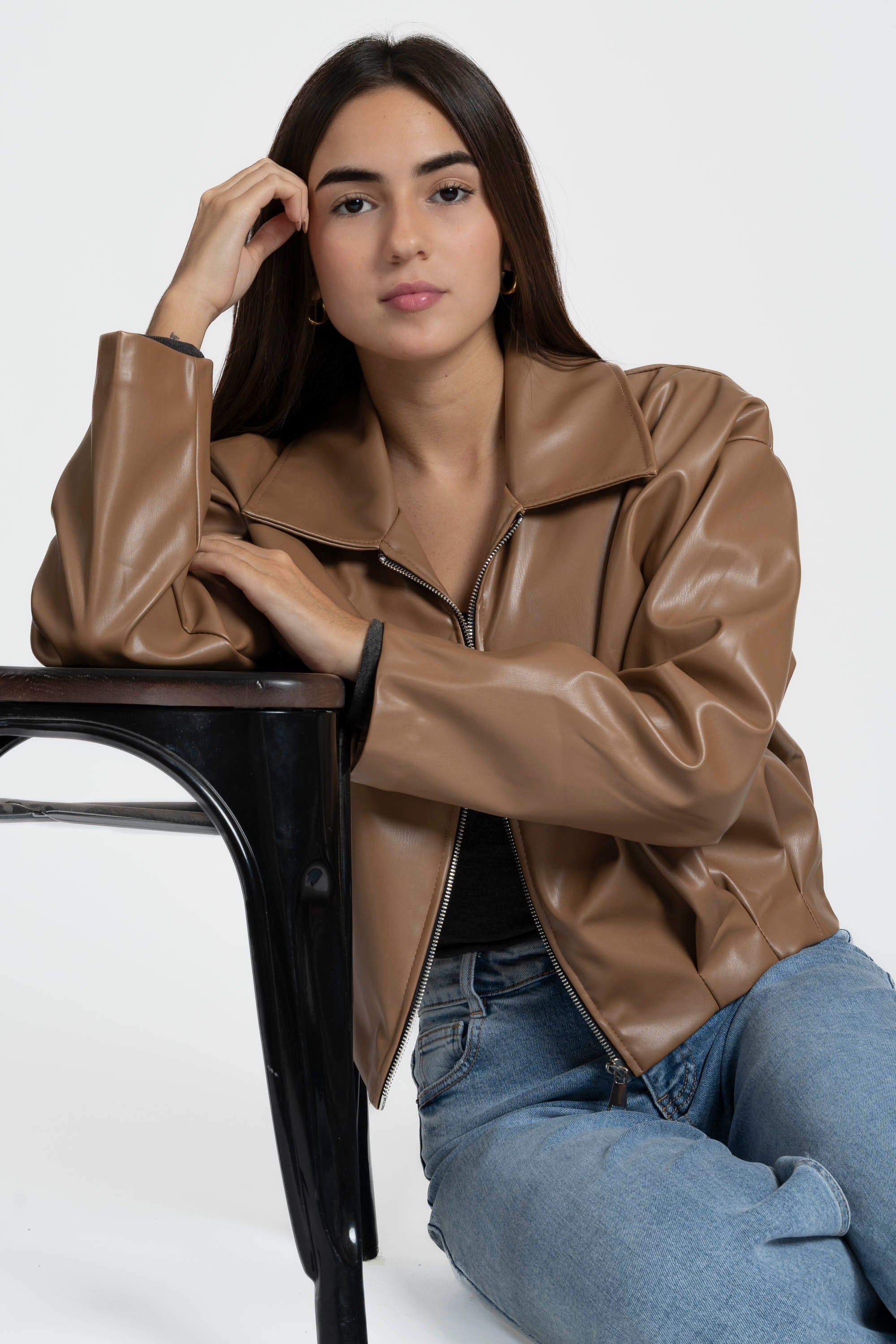 Tejido de polipiel. Cuello solapa. Manga larga. Cierre con cremallera. Composición: 70% Poliéster, 30% PUHecho en Italia