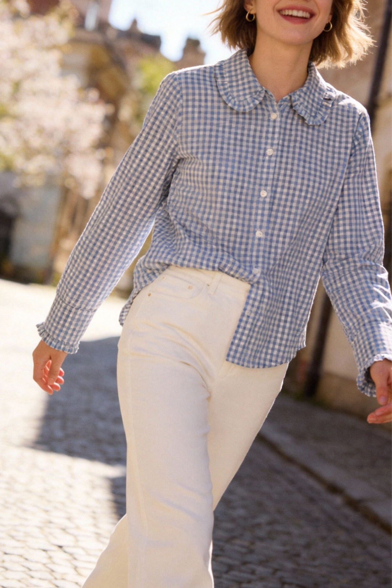 Tejido mezcla de algodón. Cuello bobo. Manga larga. Cierre con botones. Composición: 65% Poliester, 35% Algodón Hecho en Italia