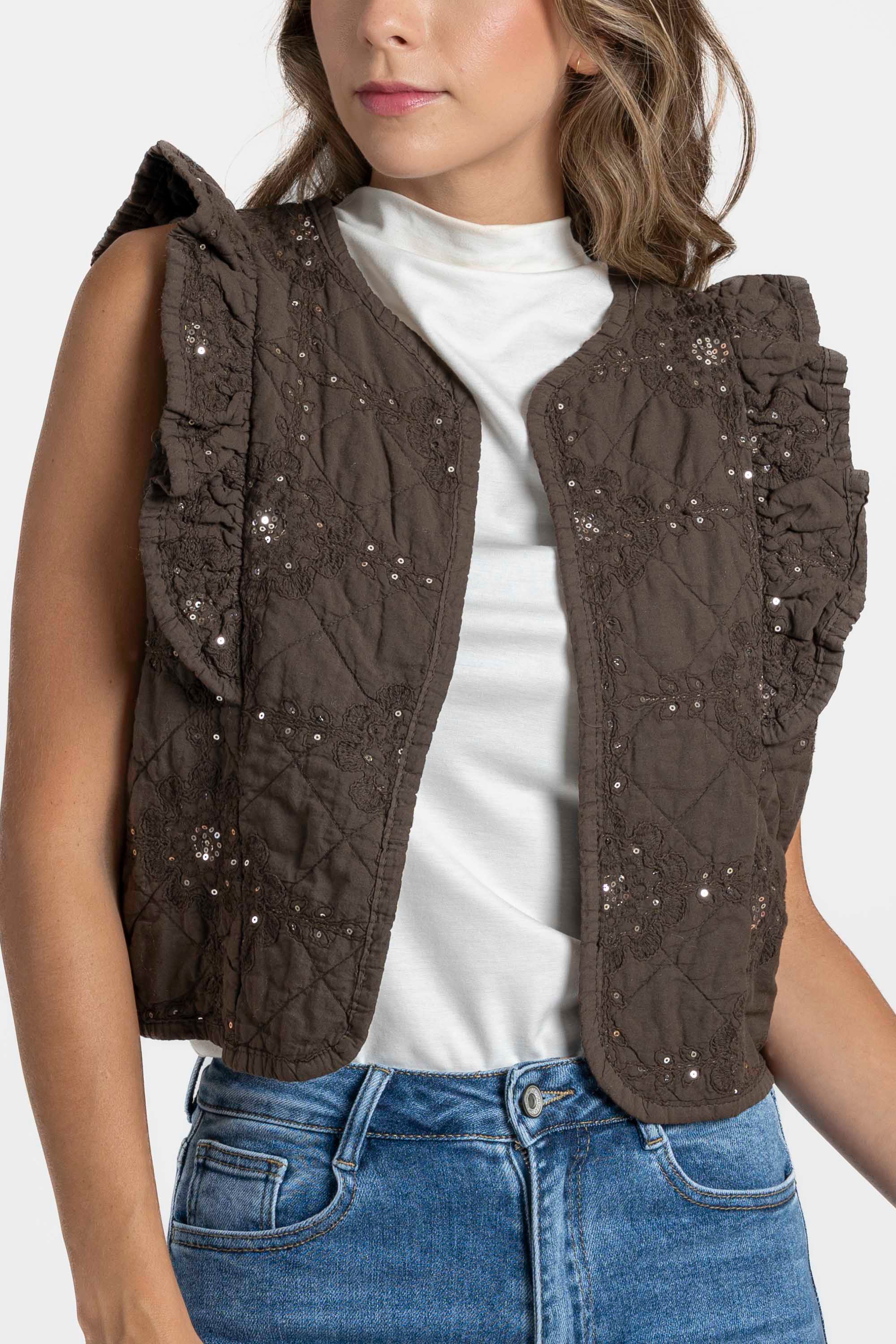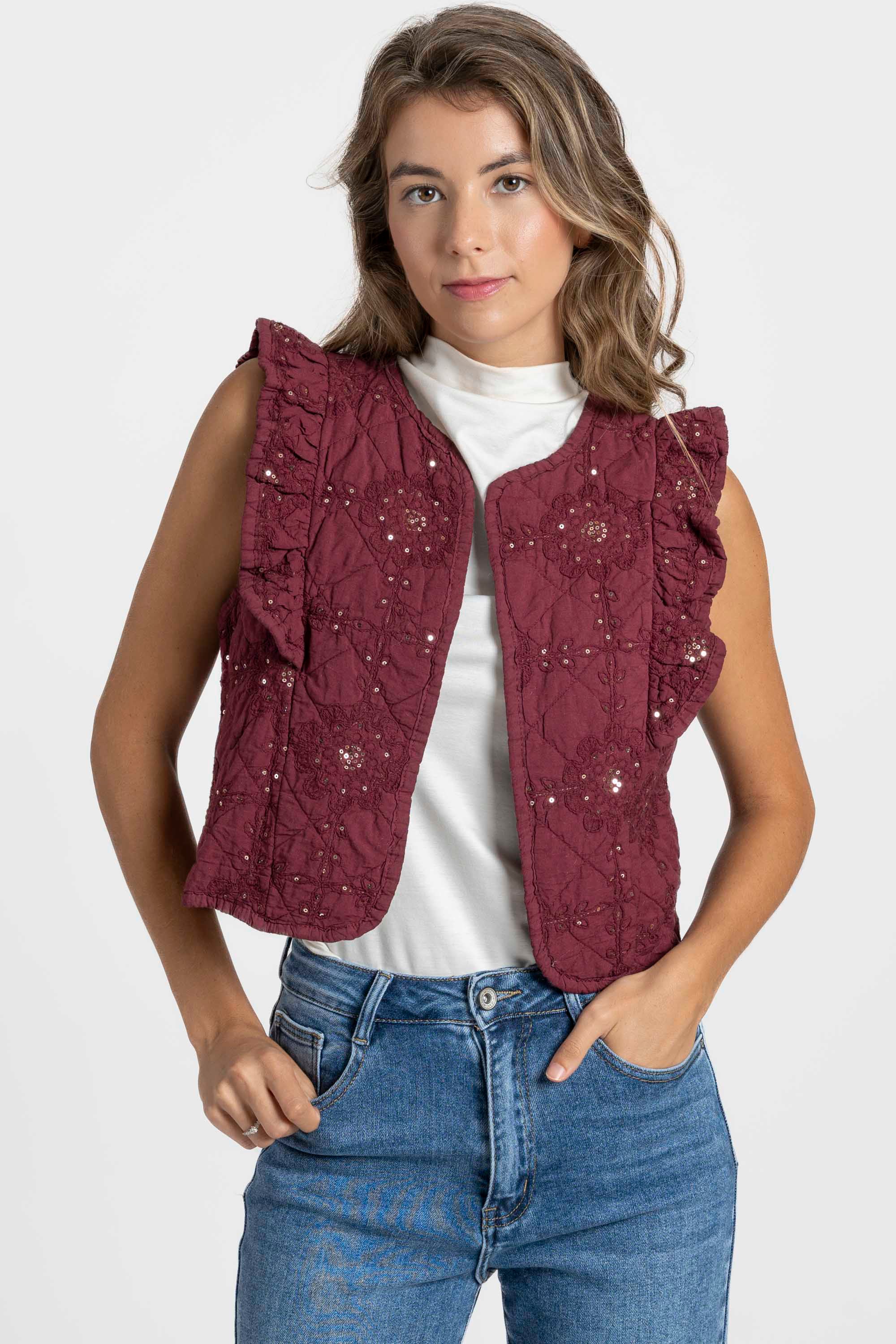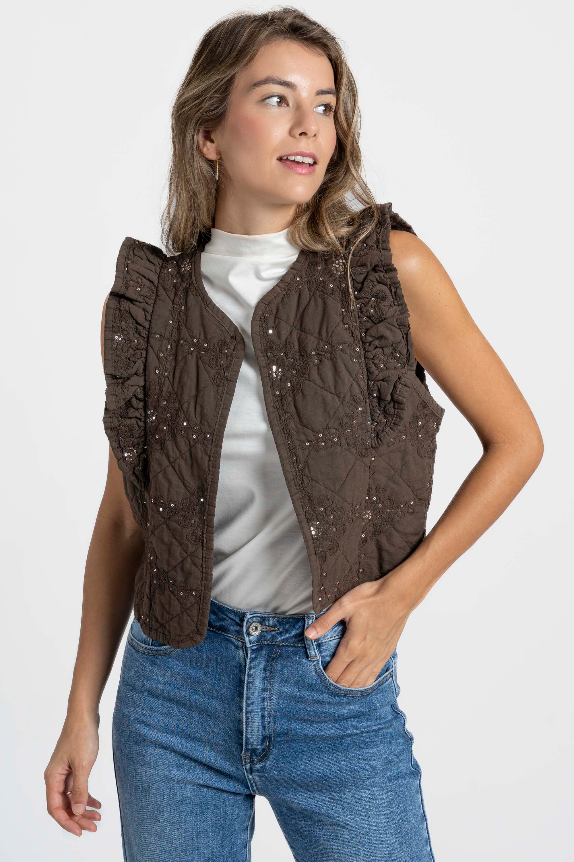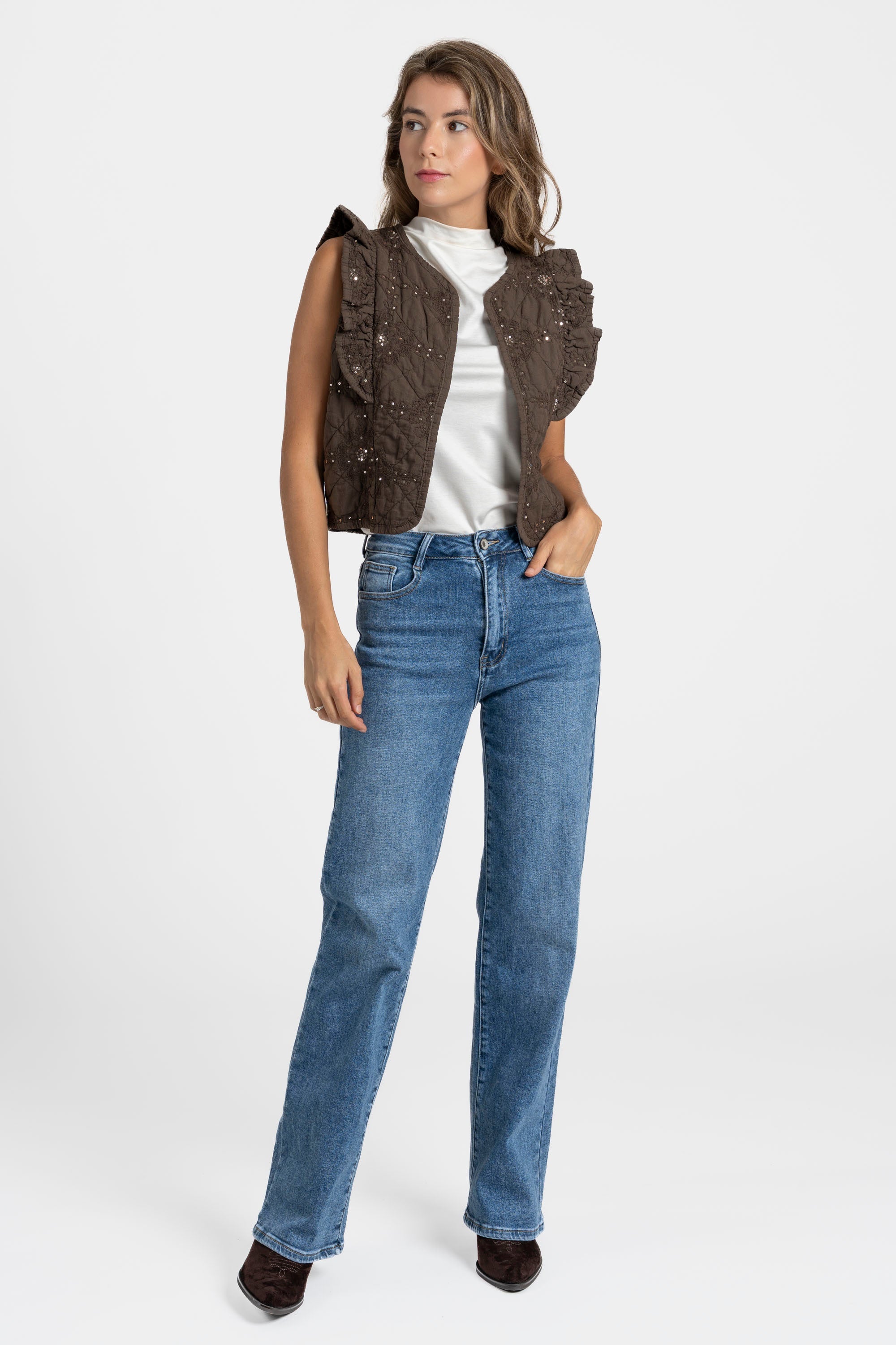 Tejido mezcla de algodón. Cuello redondo. Manga sisa. Detalle brillo. Composición: 95% Algodón, 5% Elastano Hecho en Italia