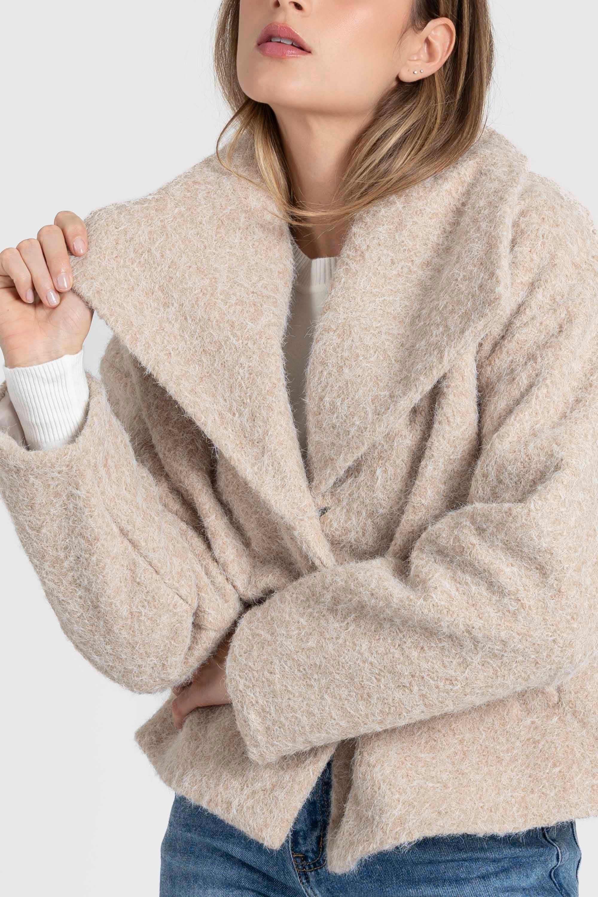 Tejido efecto pelo. Cuello solapa. Cierre de botón. Bolsillos laterales. Forrado. Diseño corto.Composición: 100% PoliésterHecho en Italia