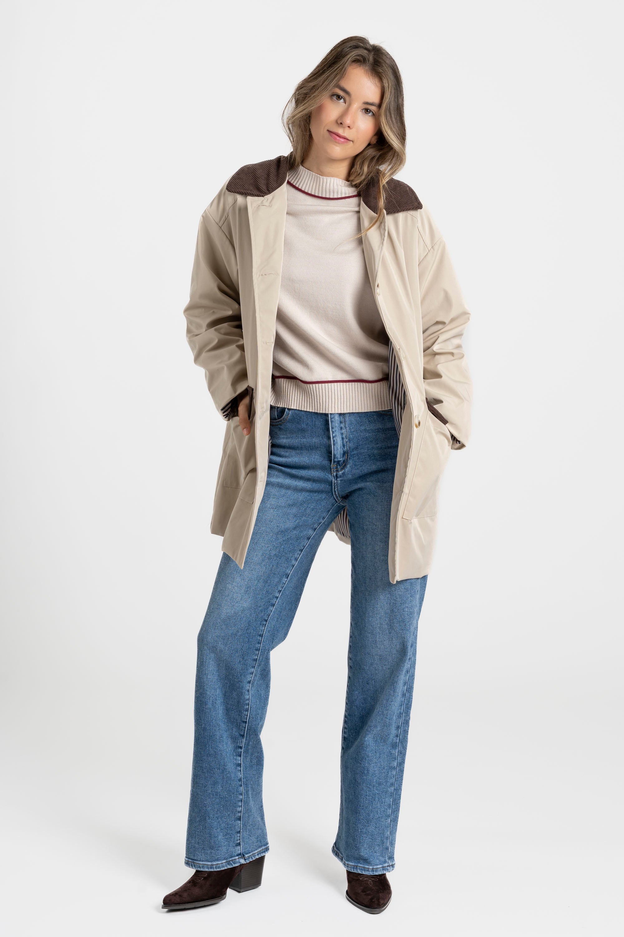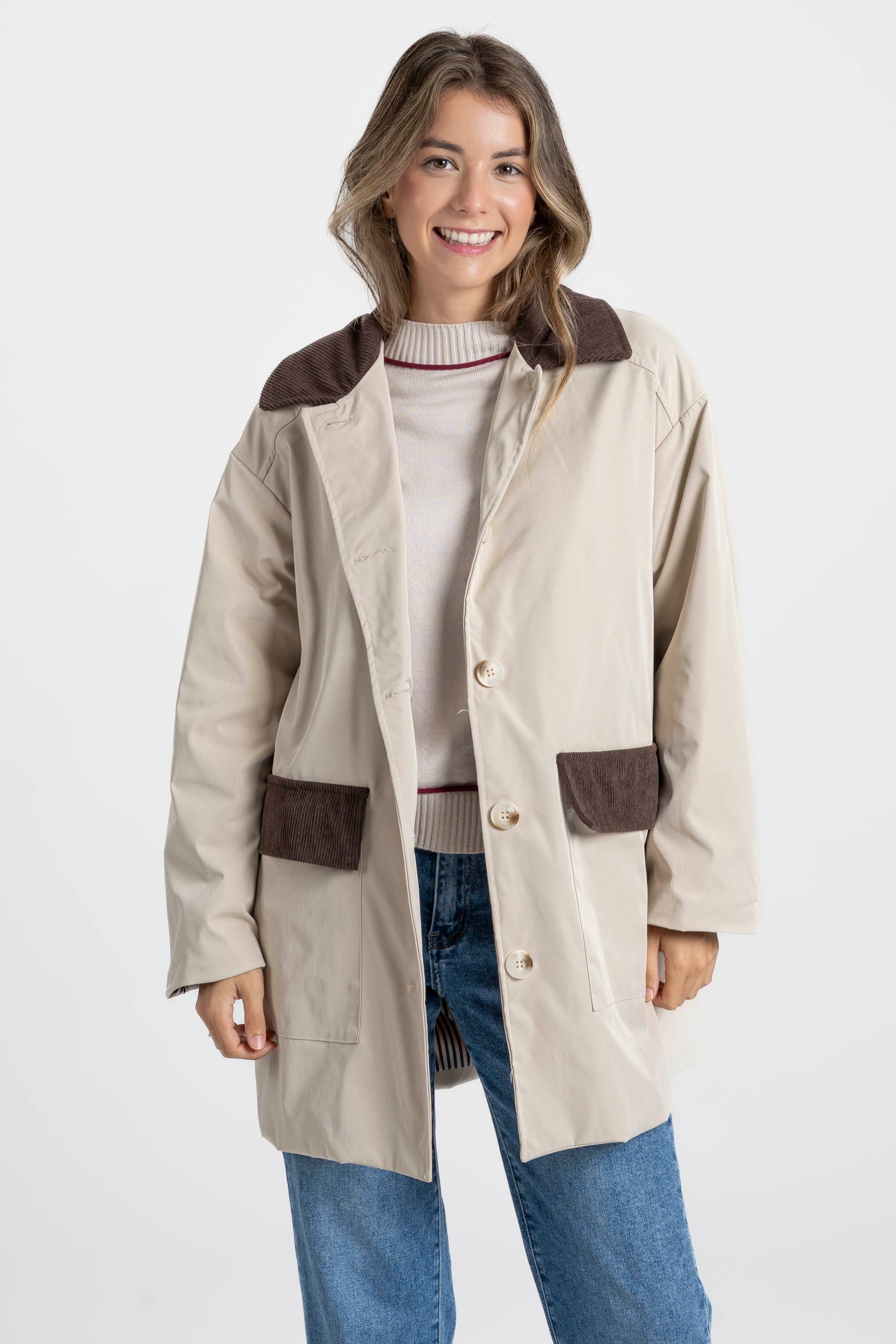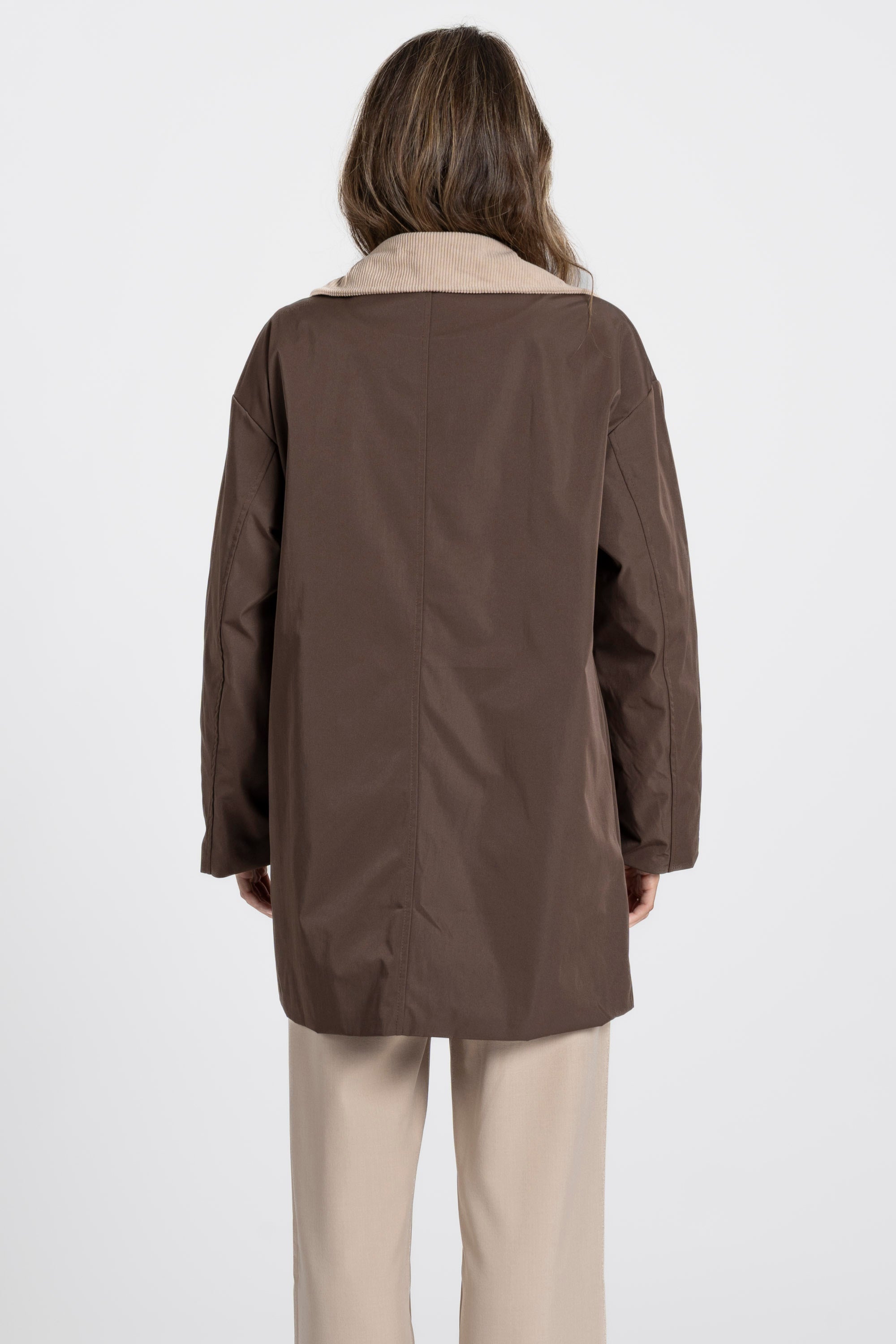 Cuello solapa de pana. Manga larga. Bolsillos frontales. Cierre de botones. Interior forrado. Composición: 100% PoliésterHecho en Italia