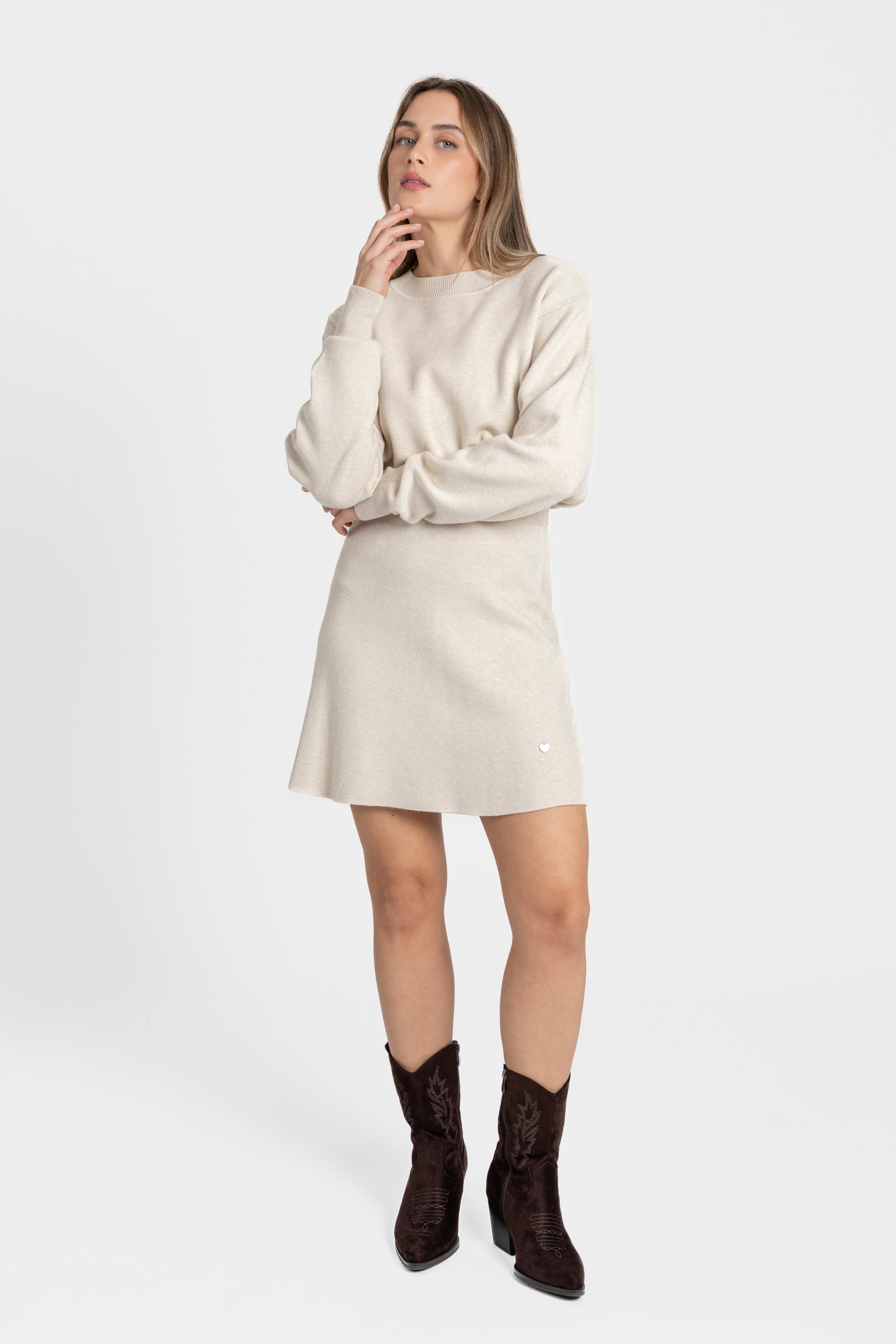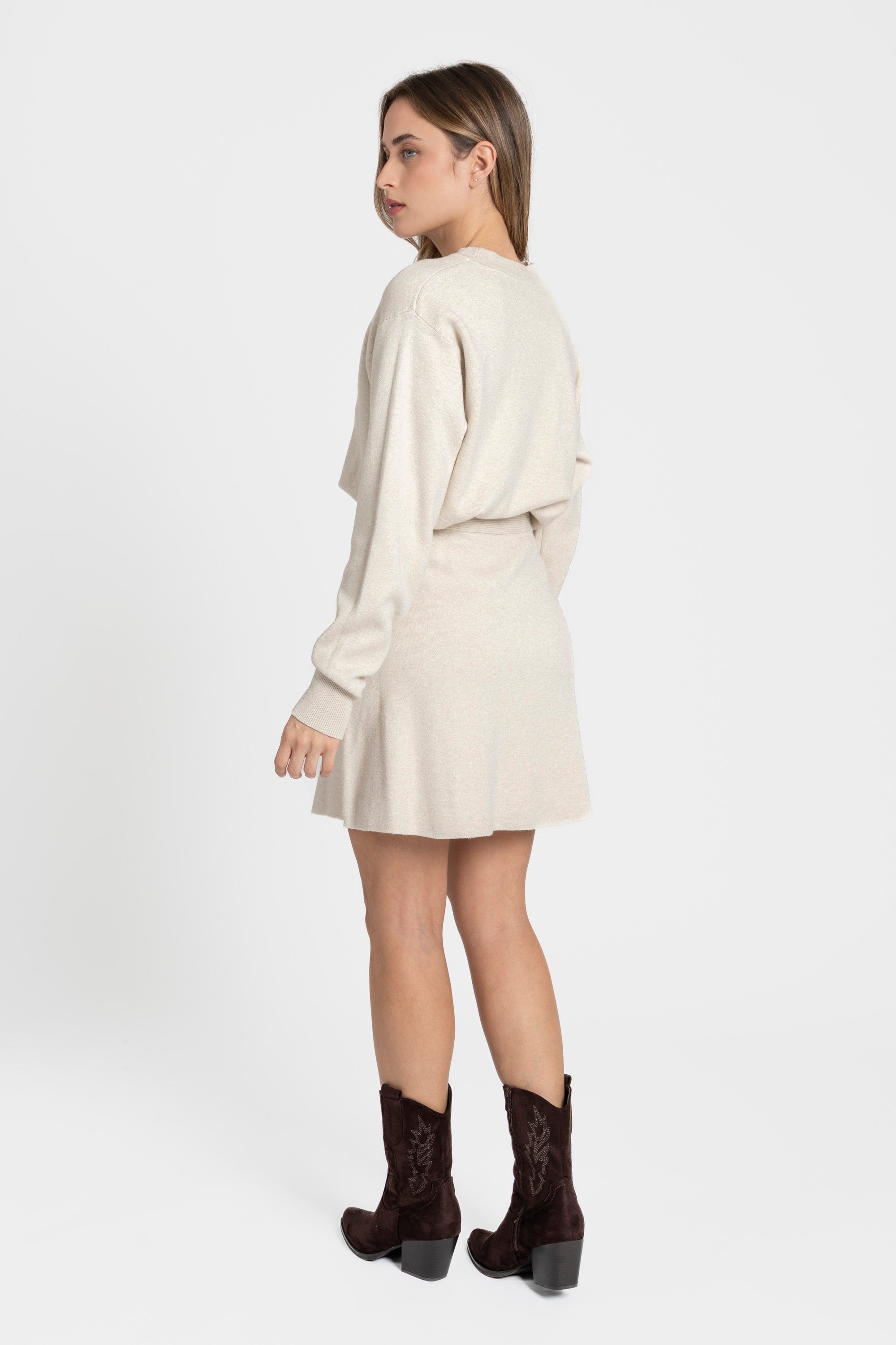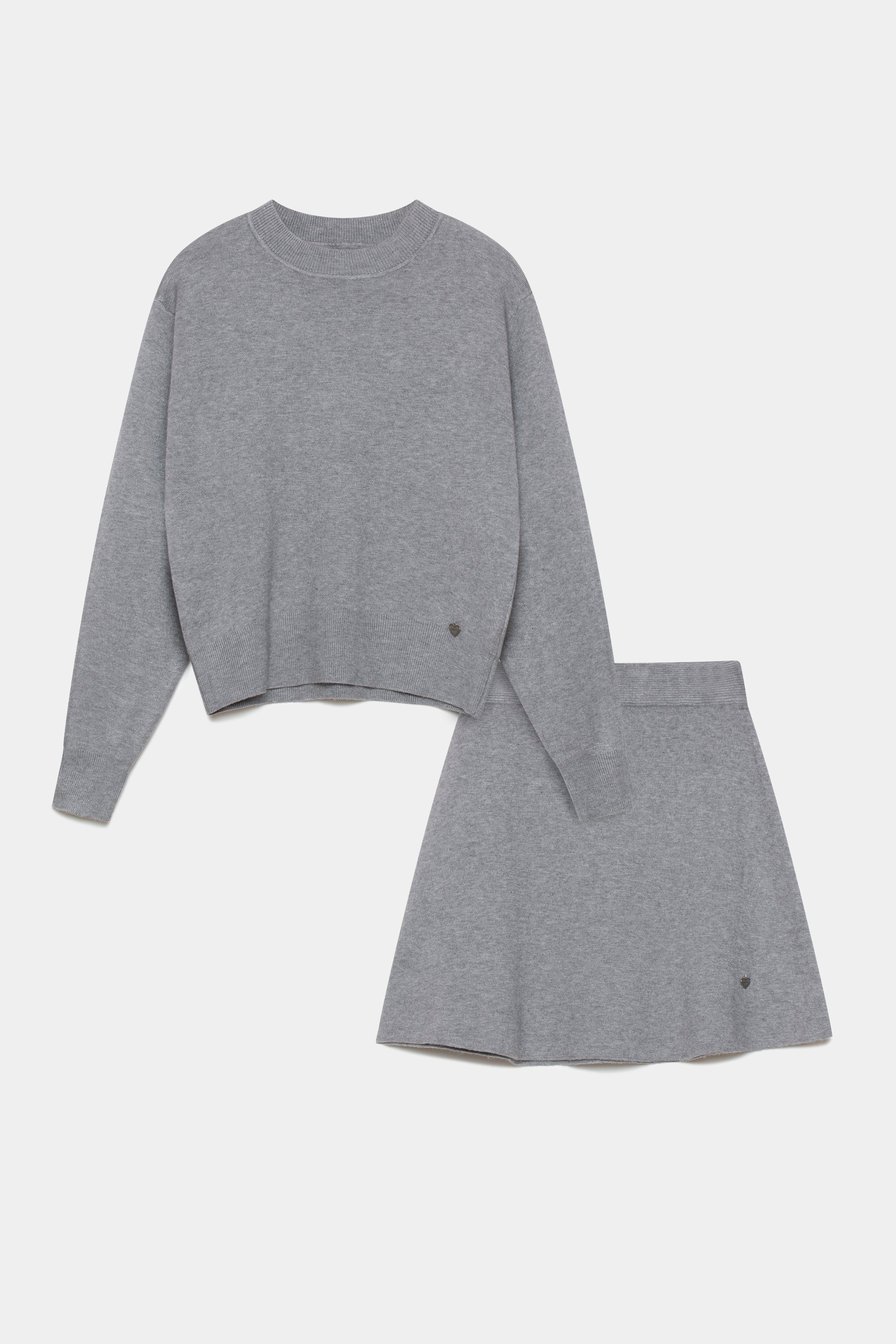 Conjunto de punto. Jersey de cuello redondo. Manga larga. Falda de tiro alto. Cintura elástica. Acabos rib.Composición: 50% Viscosa, 28%...