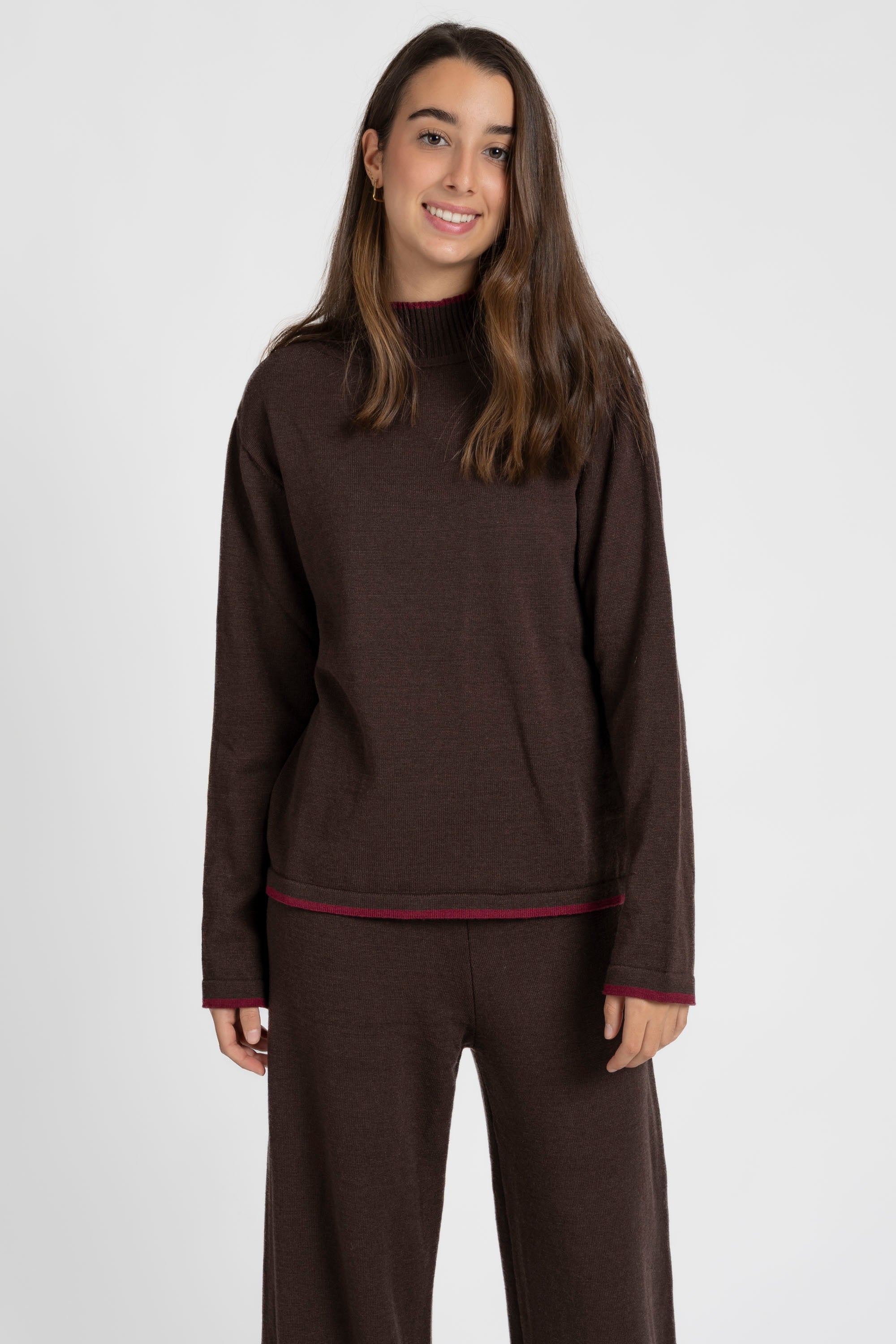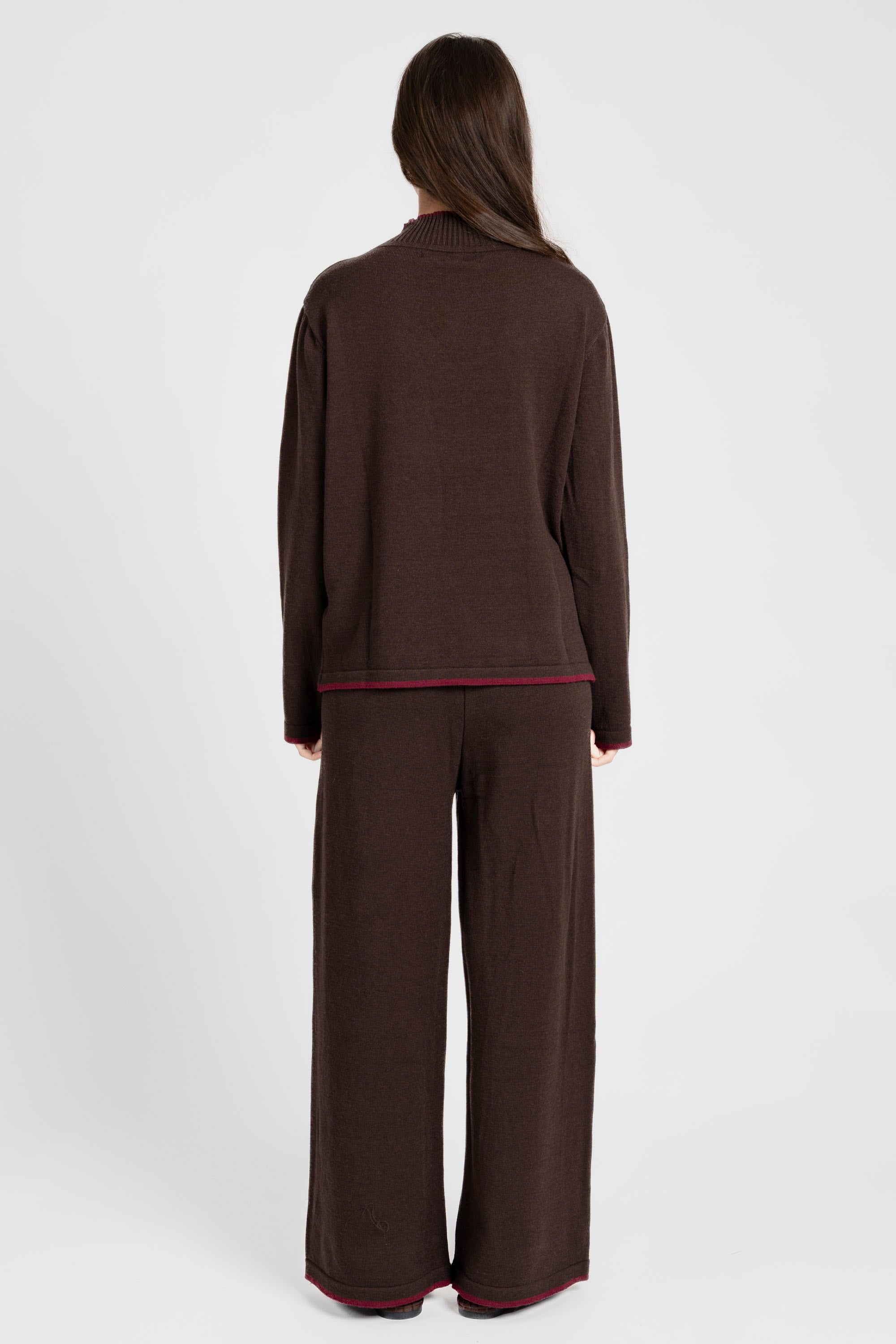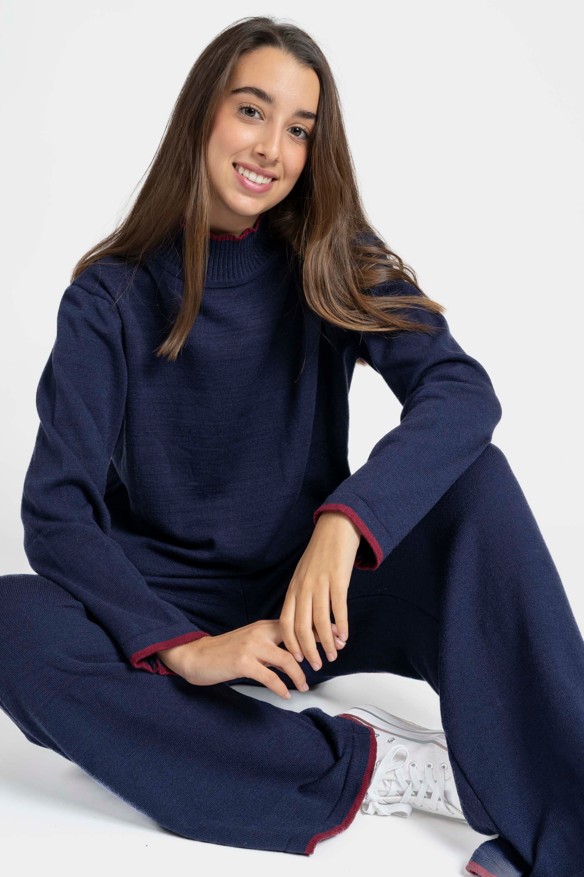 Conjunto de punto. Cuello redondo subido. Manga larga. Pantalón de tiro medio. Cintura elástica. Pernera ancha recta. Composición: 50% Viscosa, 28% Poliéster,...