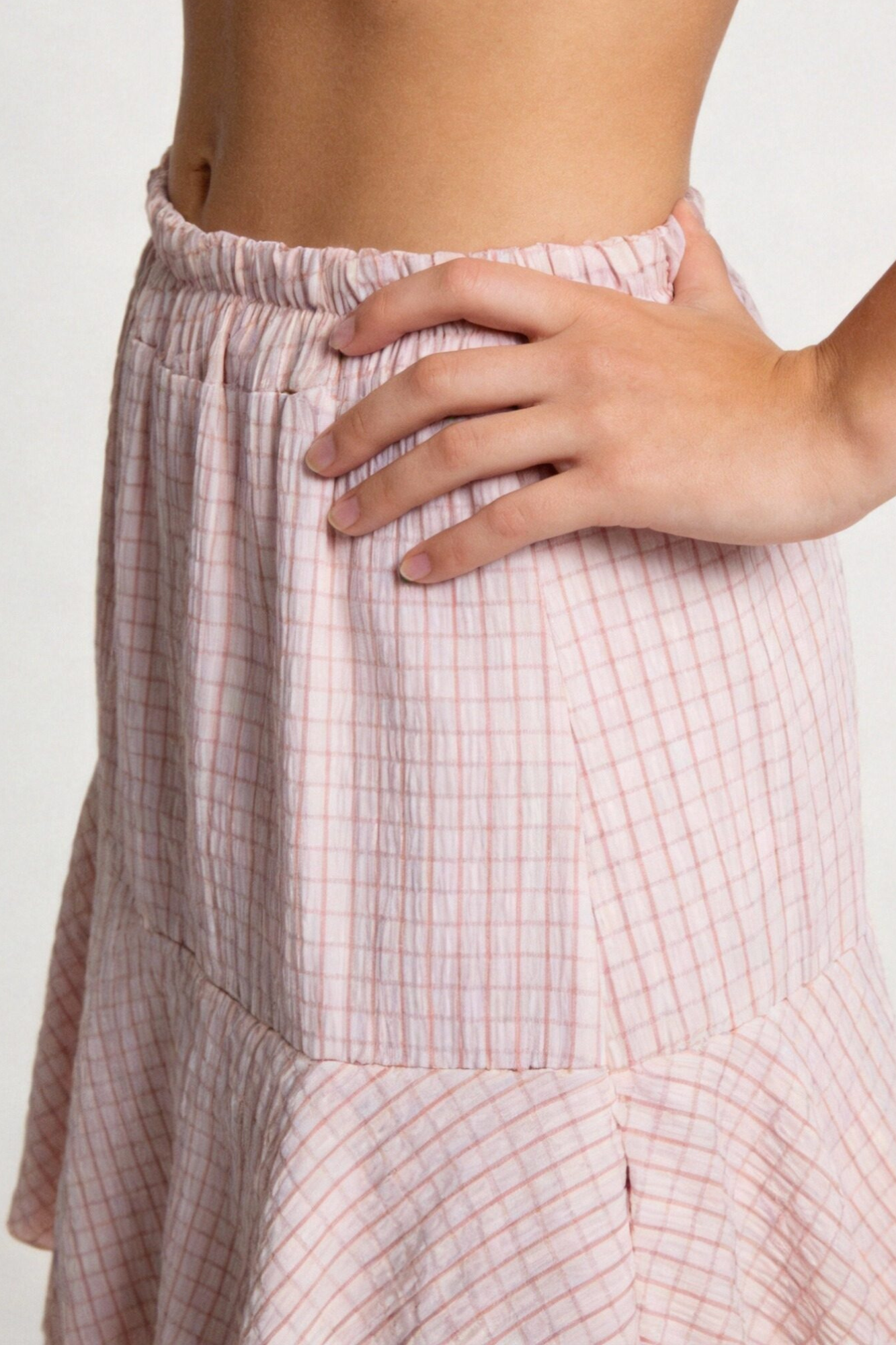 Tejido fluido. Estampado cuadros. Tiro alto. Composición: 49% Poliester, 30% Lyocell, 21% VicosaHecho en Italia