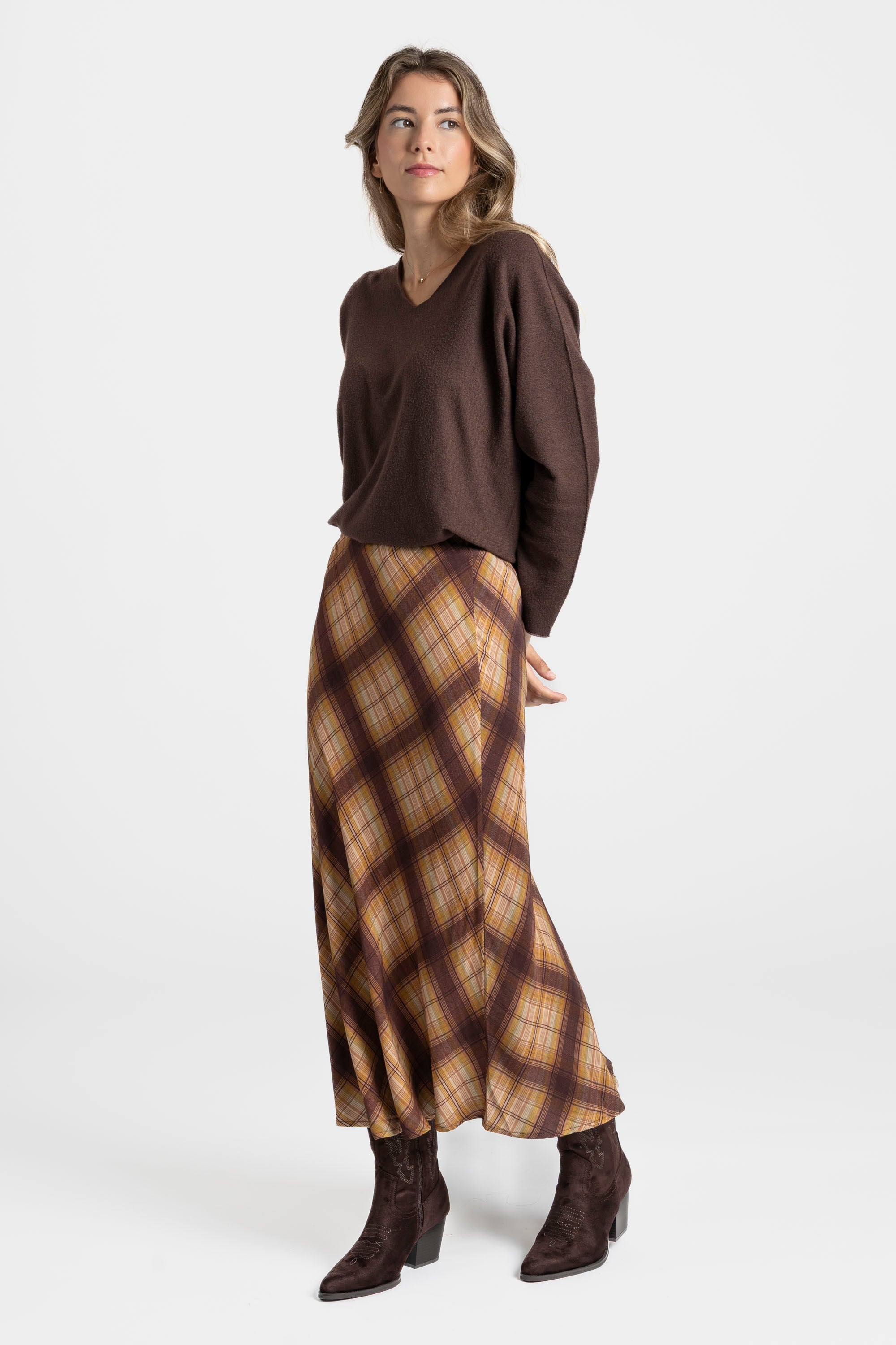 Tejido fluido. Diseño estampado. Diseño midi. Cintura elástica. Talla modelo XS. Composición: 100% Viscosa Hecho en Italia