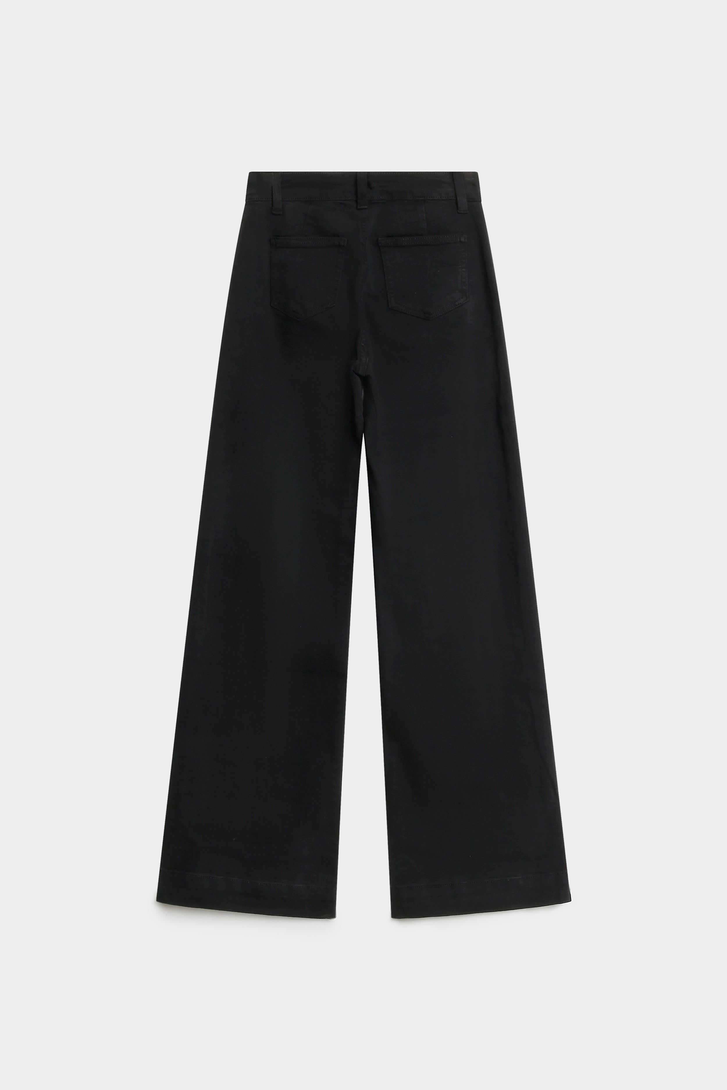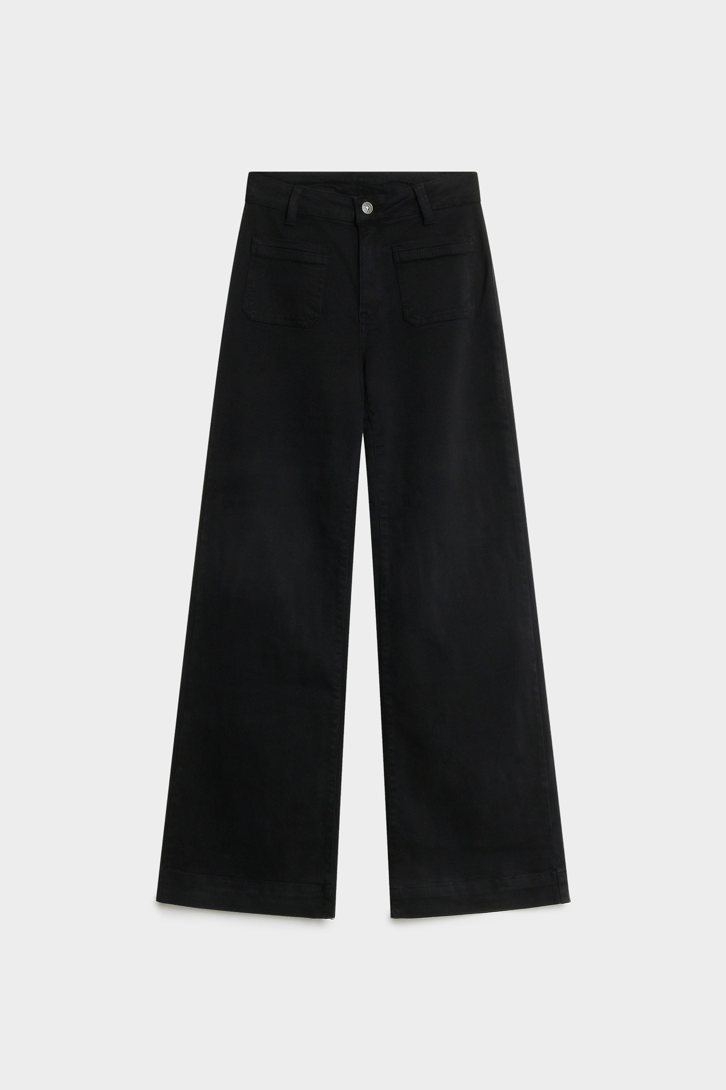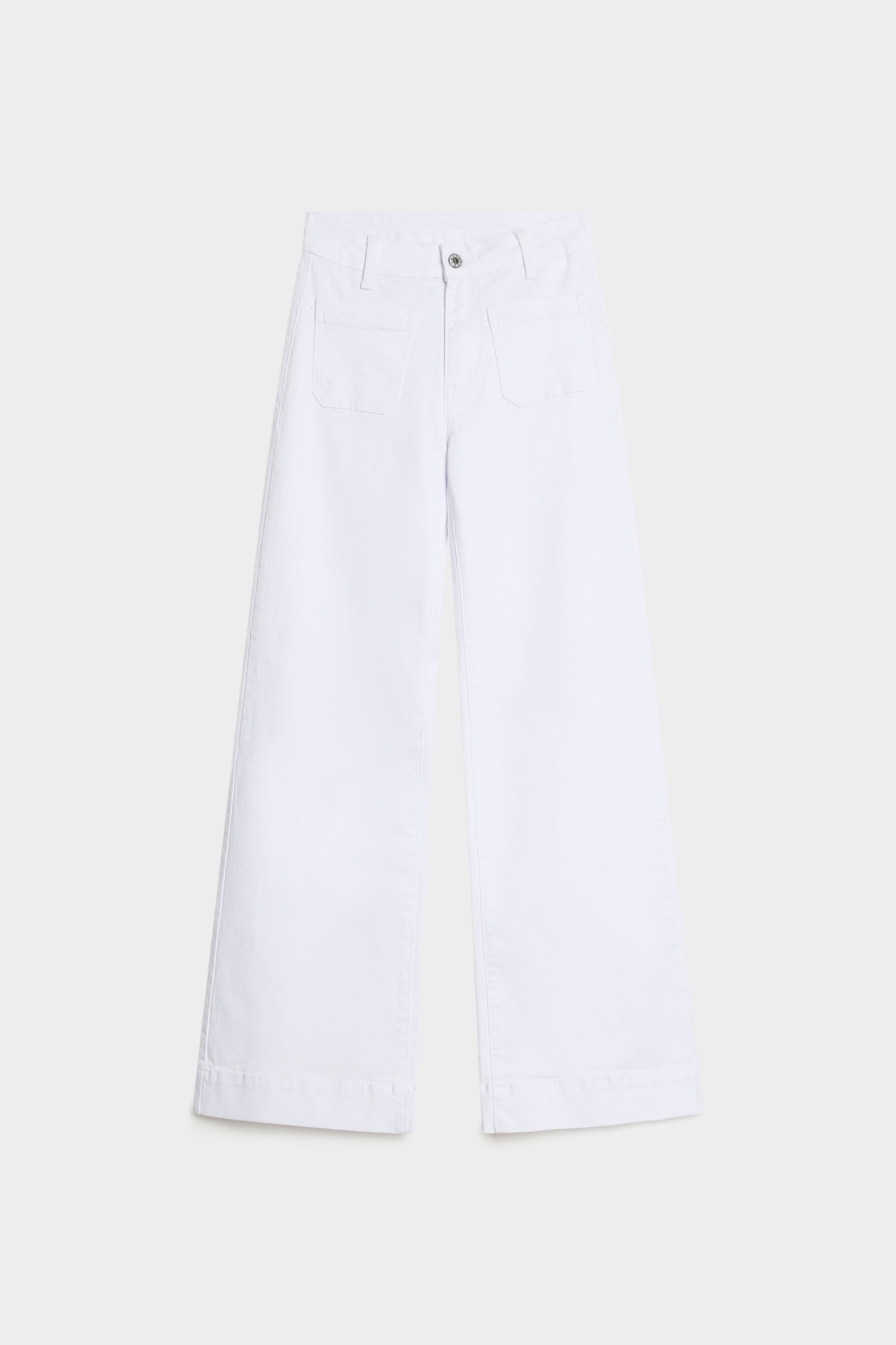Tejido de algodón. Pantalón de tiro alto. Cuatro bolsillos. Pernera ancha. Cierre frontal con cremallera y botón.Composición: 95% Algodón, 3% Poliester,...