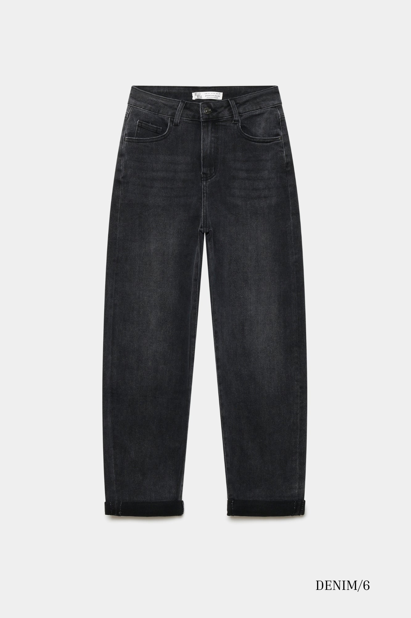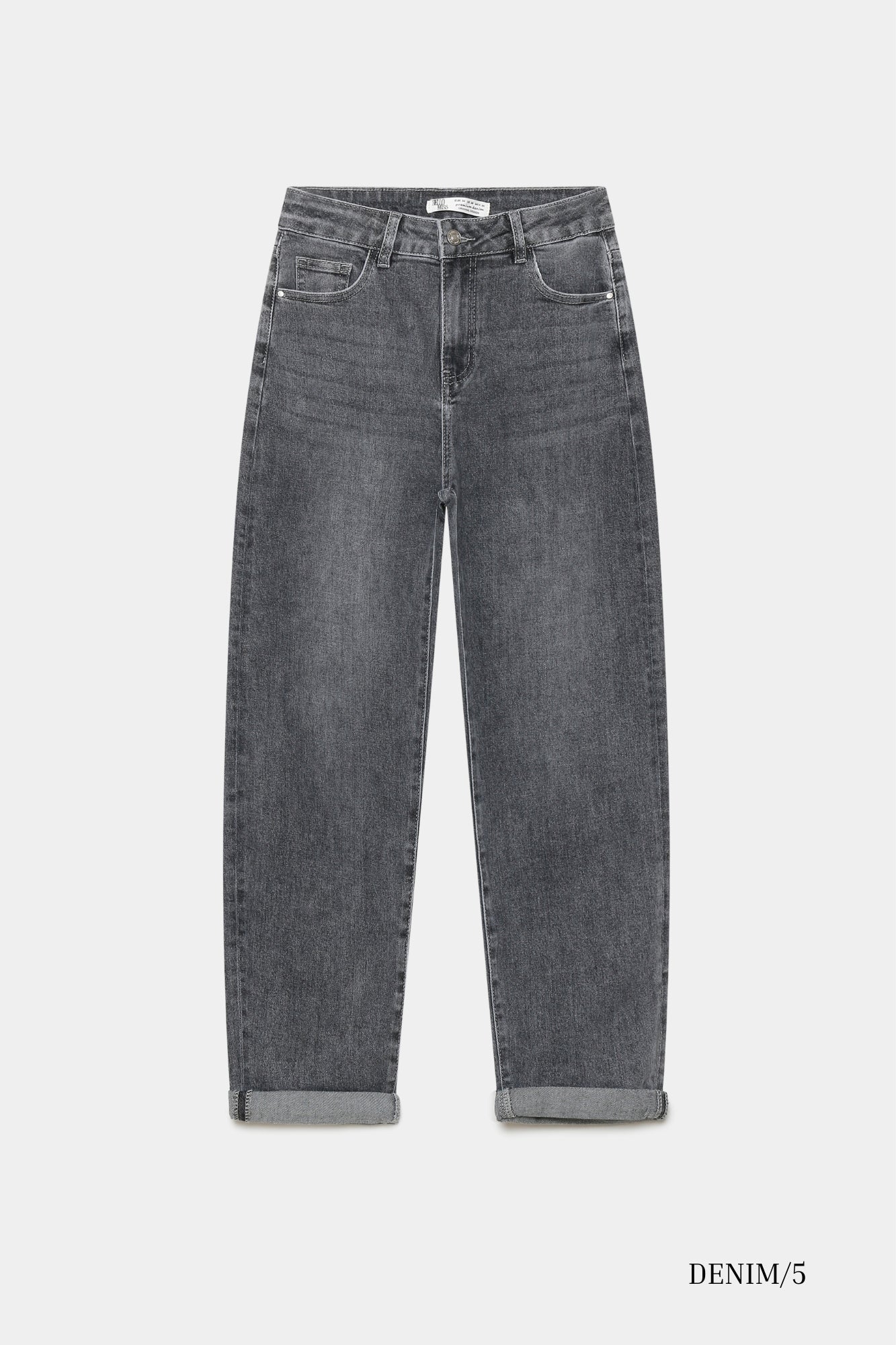 Tejido mezcla de algodón. Tejido elástico. Tiro alto. Cinco bolsillos. Bajo acabado con costuras. Cierre de cremallera y botón. Trabillas.Composición: 88% Algodón, 10%...