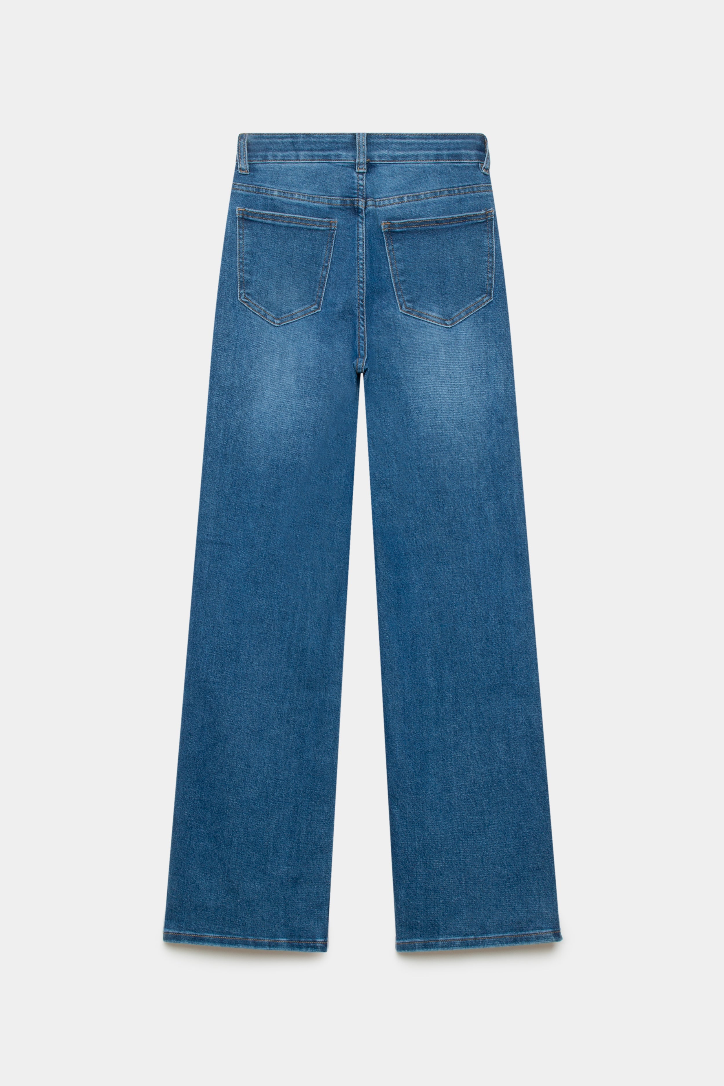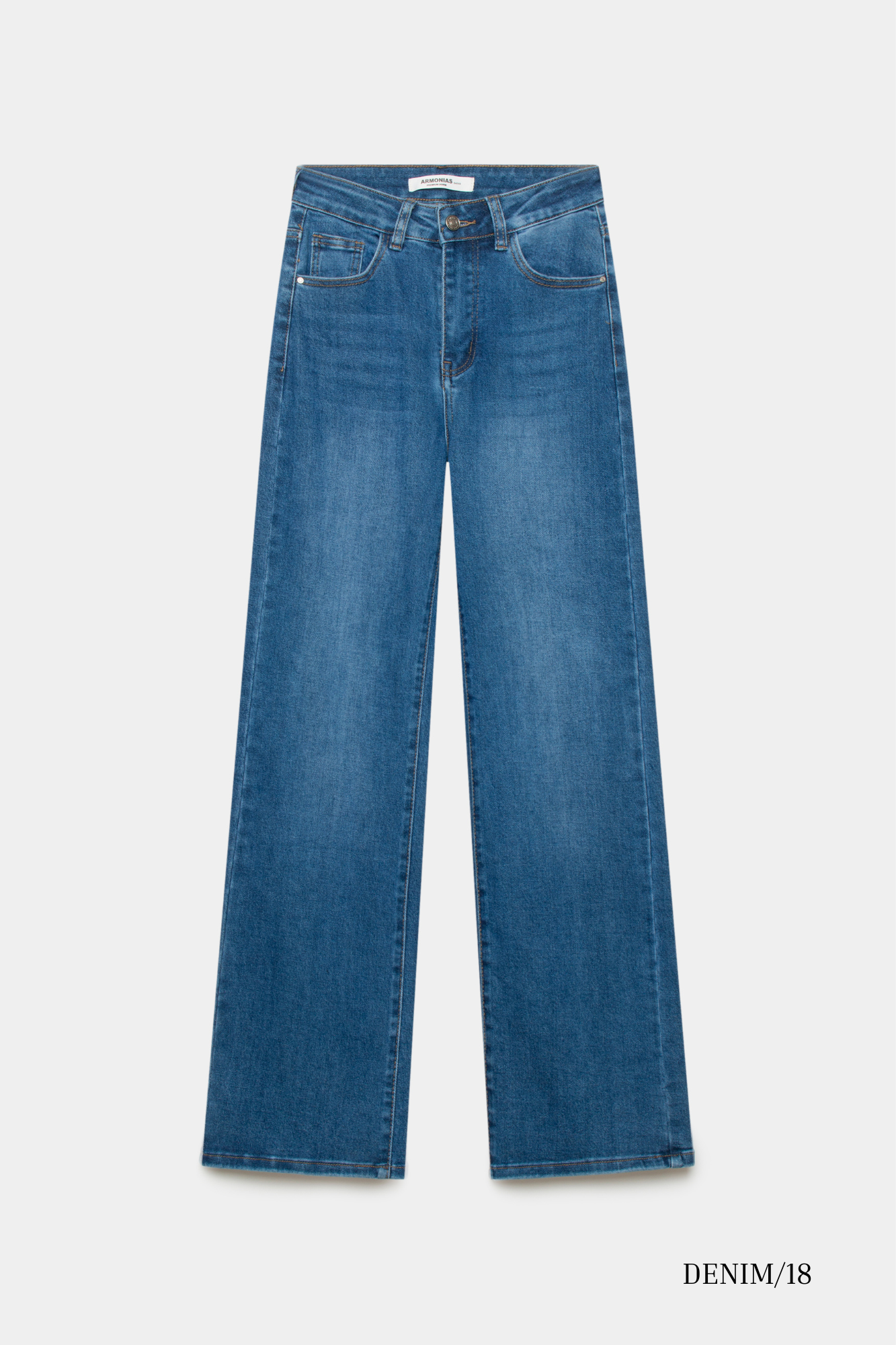 Tejido mezcla de algodón. Tejido tejano vaquero. Tejido elástico. Diseño recto. Diseño largo. Tiro alto. Cinco bolsillos. Cierre de cremallera y botón. Trabillas.Composición:...