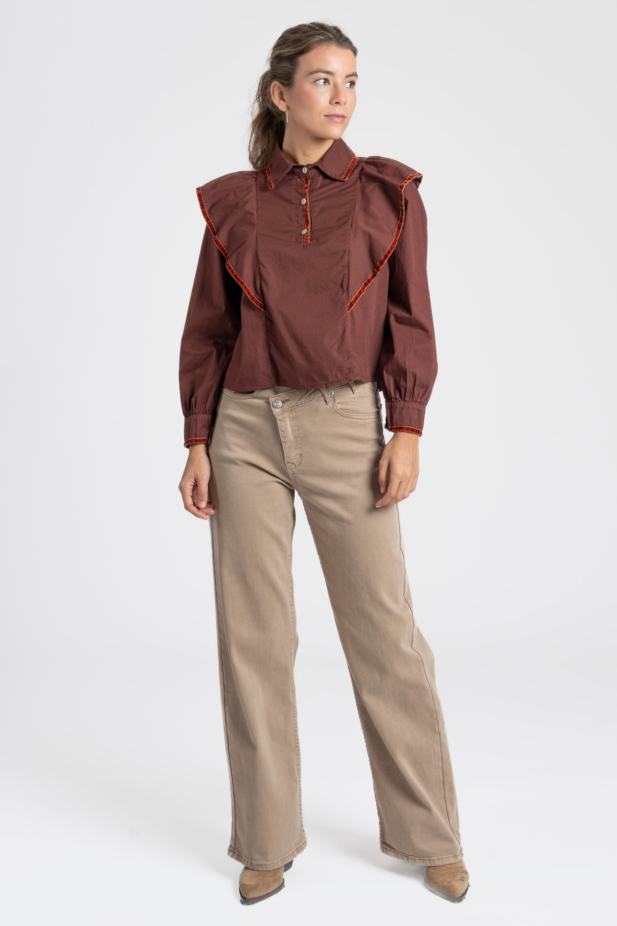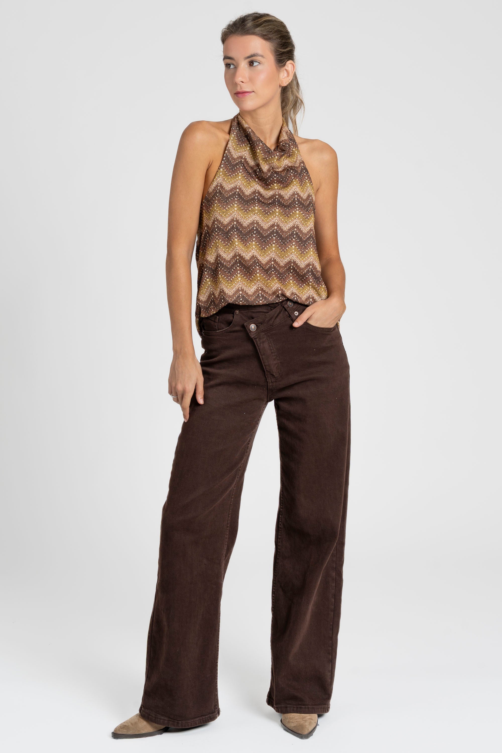 Tejido mezcla de algodón. Tejido tejano vaquero. Tejido elástico. Diseño recto. Diseño largo. Tiro alto. Cinco bolsillos. Cierre de cremallera y botón. Trabillas....