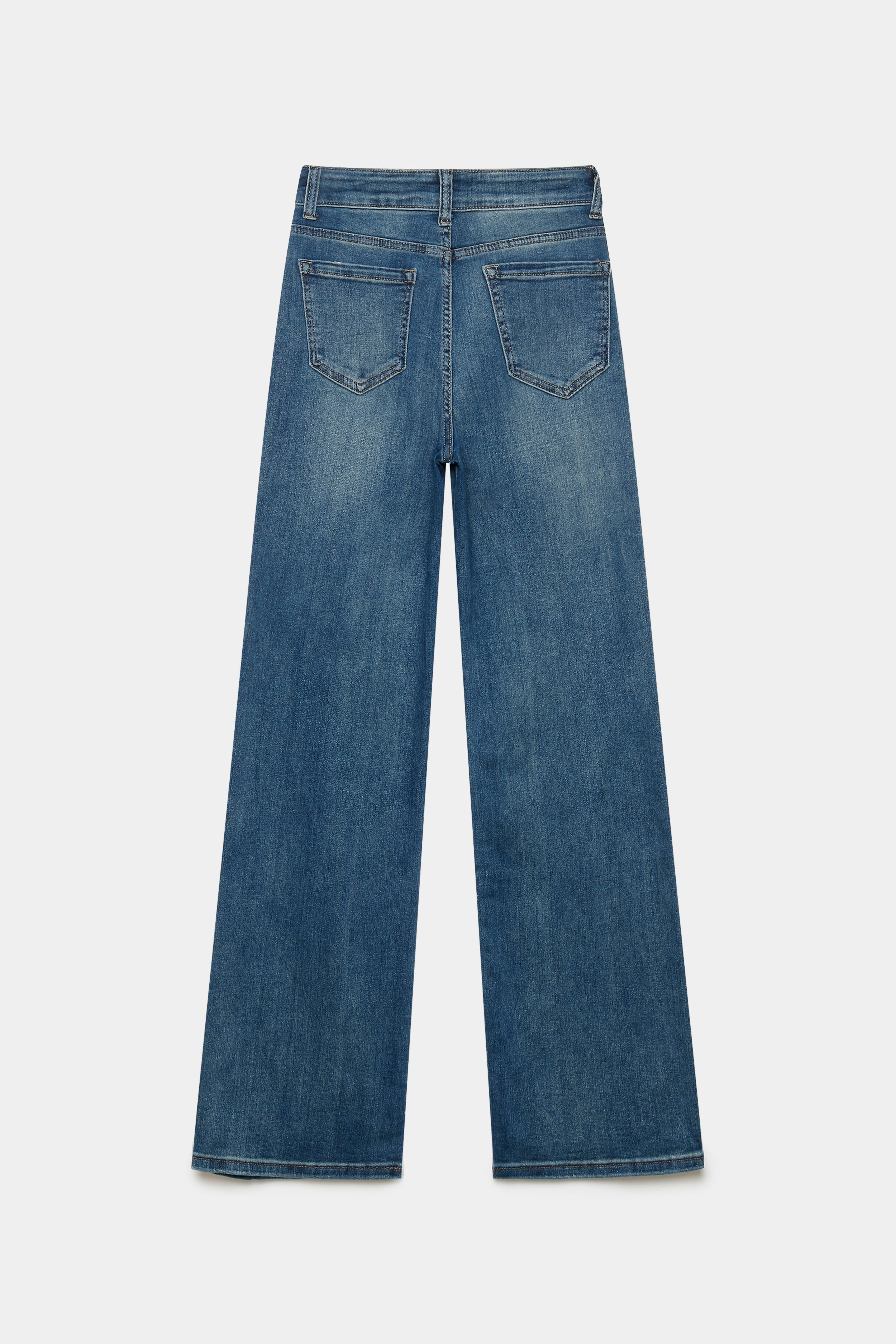 Tejido mezcla de algodón. Tejido tejano vaquero. Tejido elástico. Diseño recto. Diseño largo. Tiro alto. Cinco bolsillos. Cierre de cremallera y botón. Trabillas.Composición:...