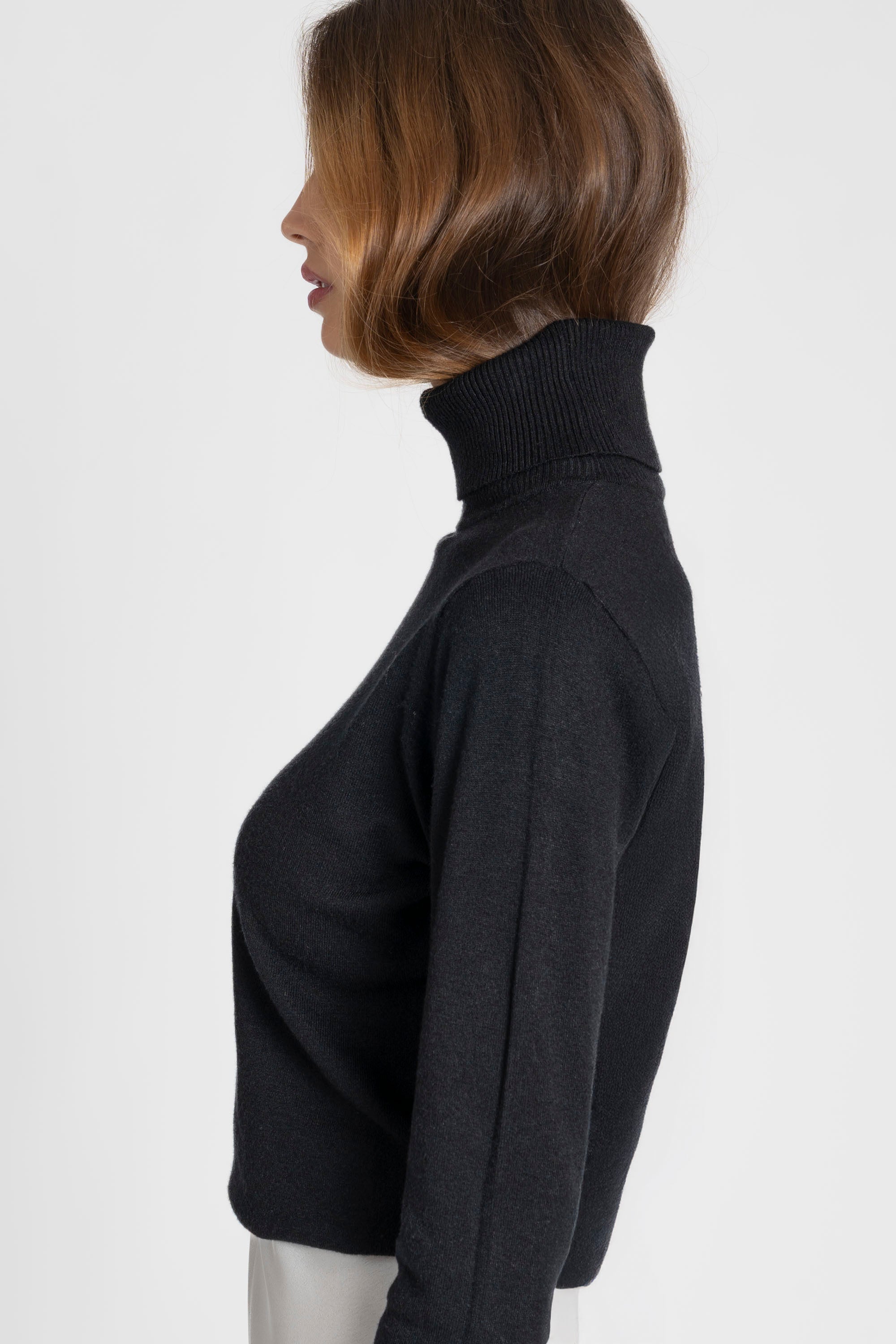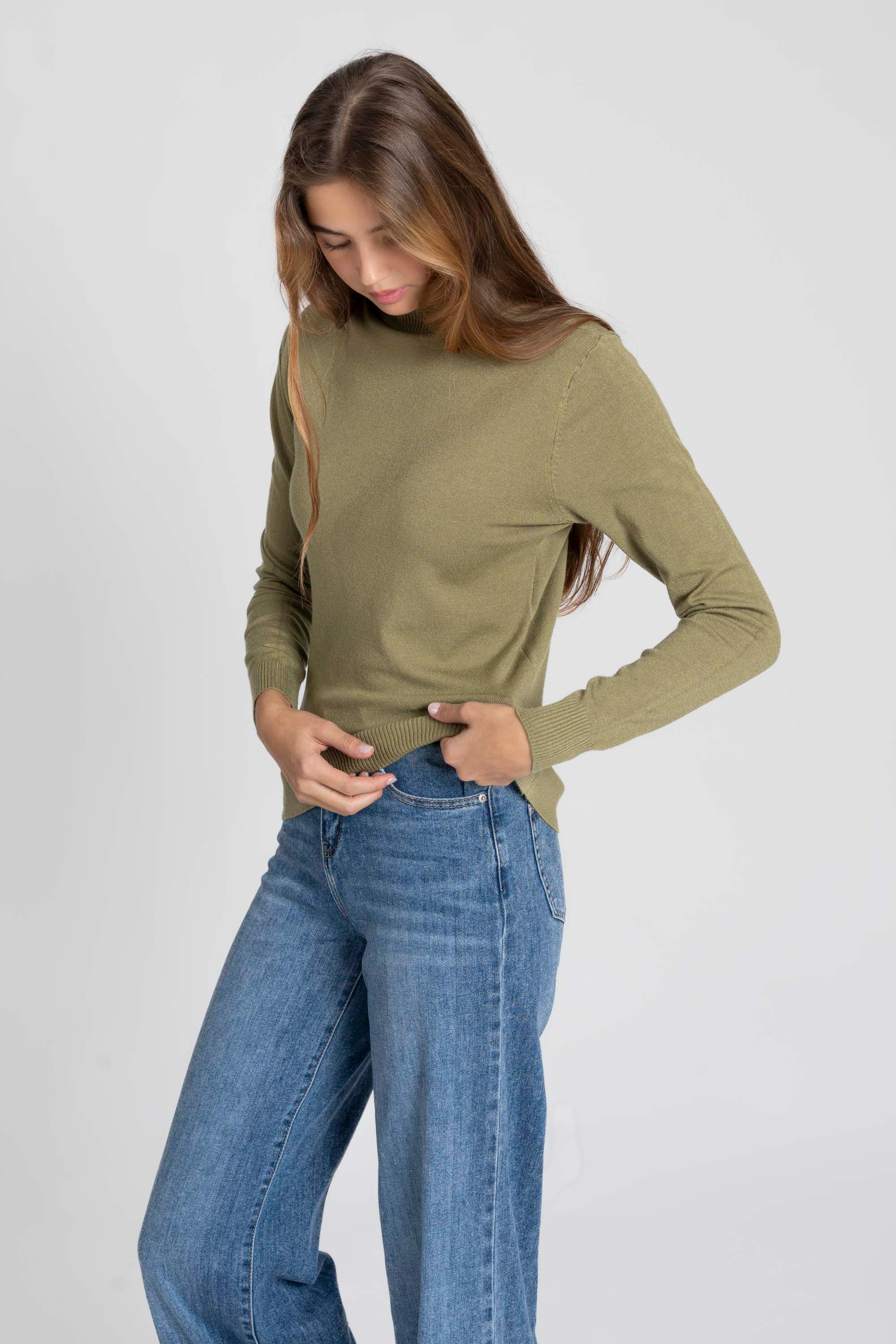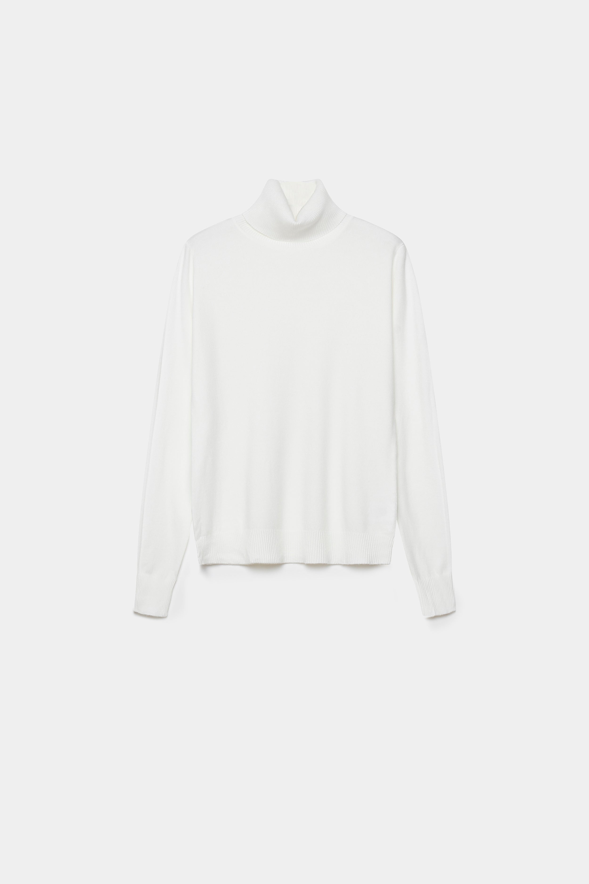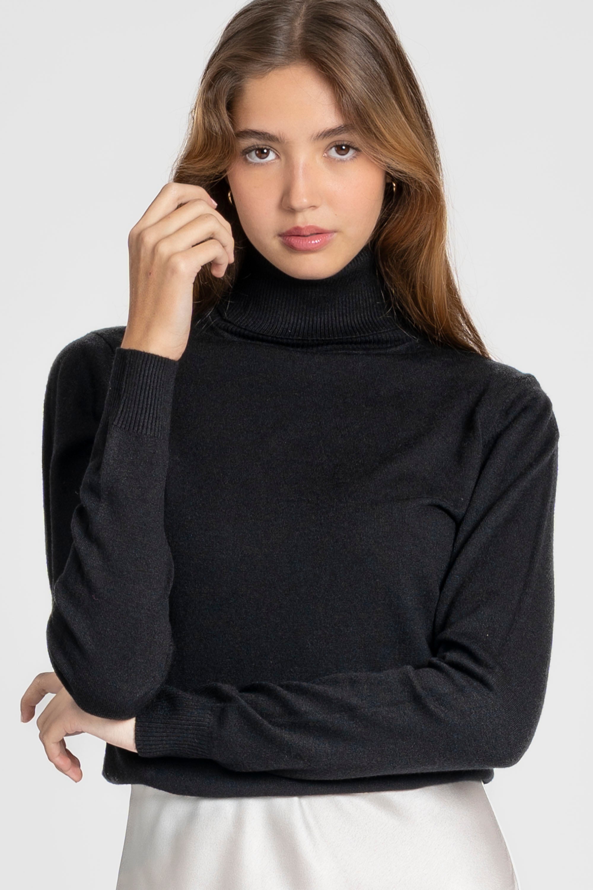 Tejido de punto. Diseño recto. Diseño básico. Cuello vuelto. Manga larga. Terminaciones en canalé. Composición: 20% Viscosa, 15% Poliamida, 30% Modal,...