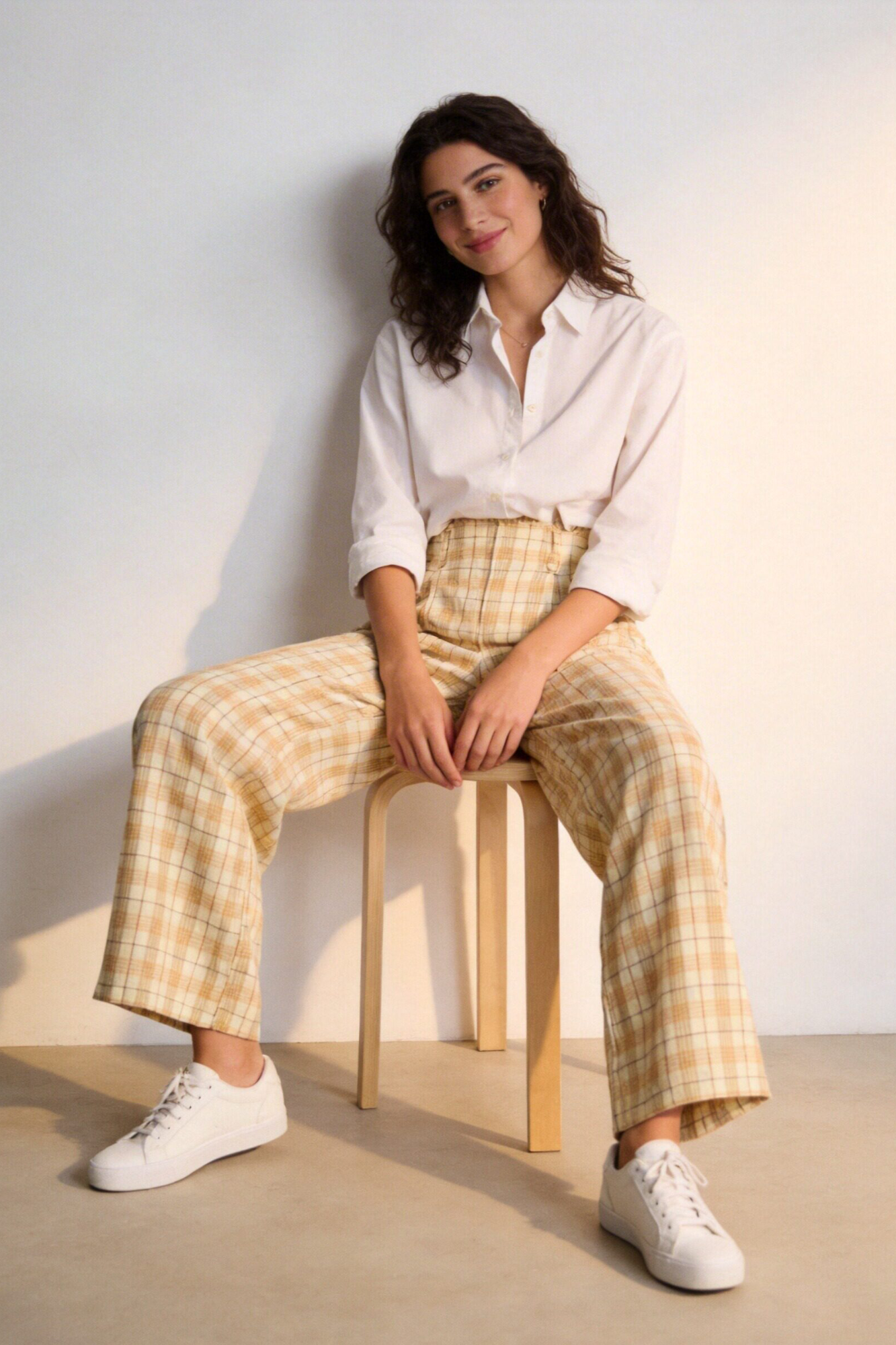 Tejido mezcla de algodón. Tiro alto con trabillas. Cintura elástica. Bolsillos laterales. Pierna ancha. Composición: 80% Algodón, 20% Poliester Hecho en Italia