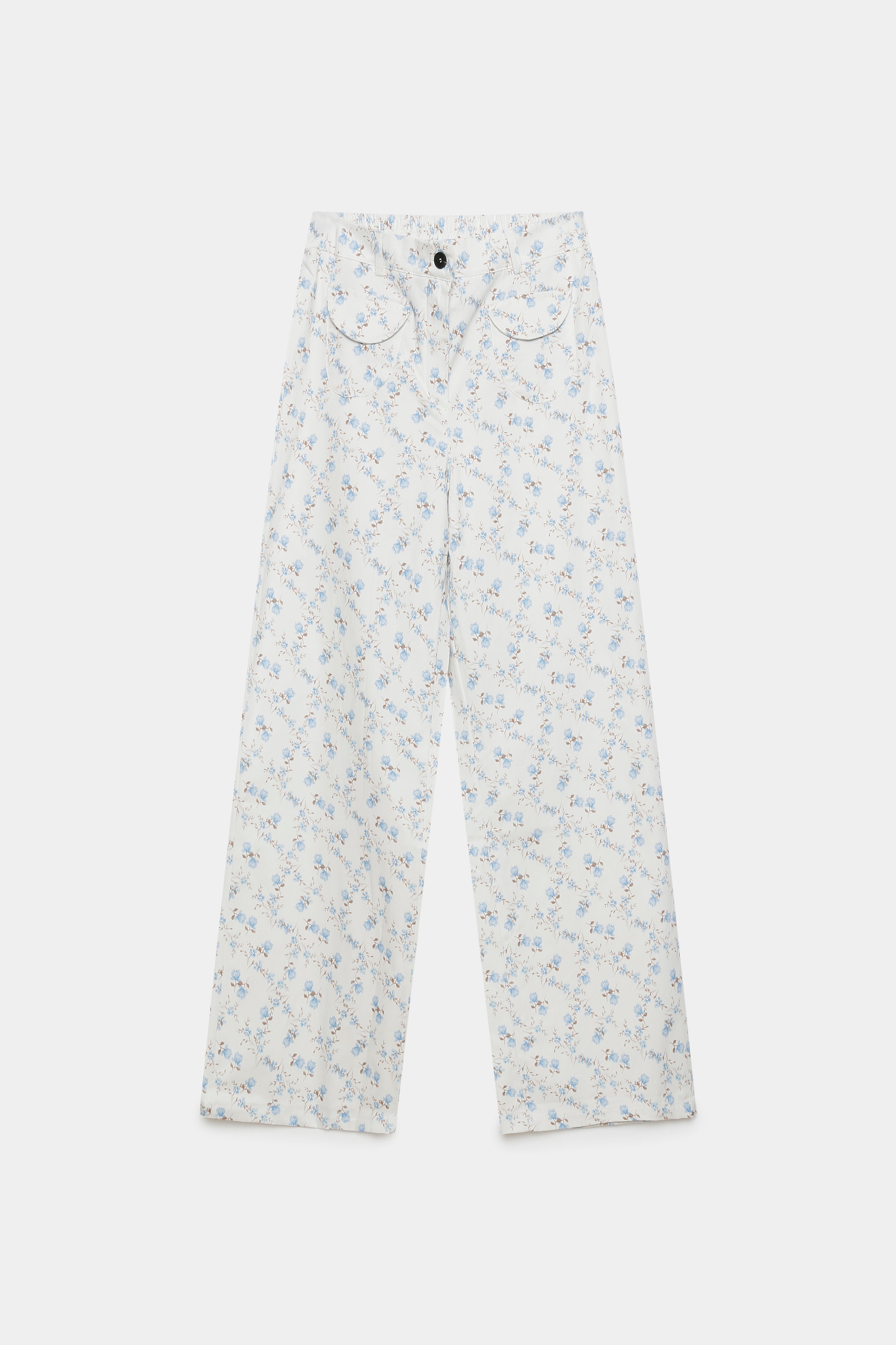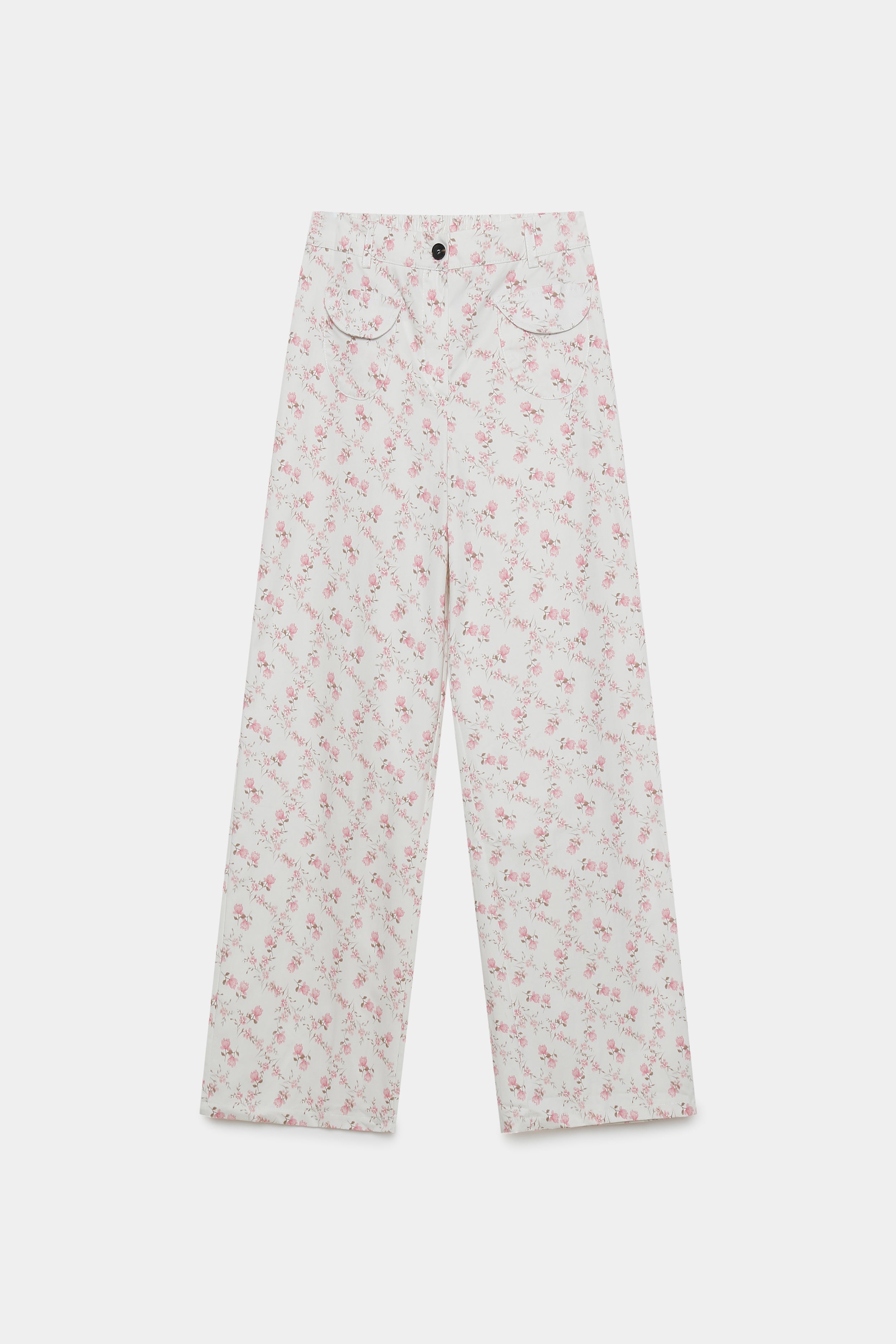 Tejido de algodón. Tiro alto. Cierre con cremallera y botón. Cintura elástica. Bolsillos frontales. Pernera ancha. Largo talla S 103cm.Composición: 97%...