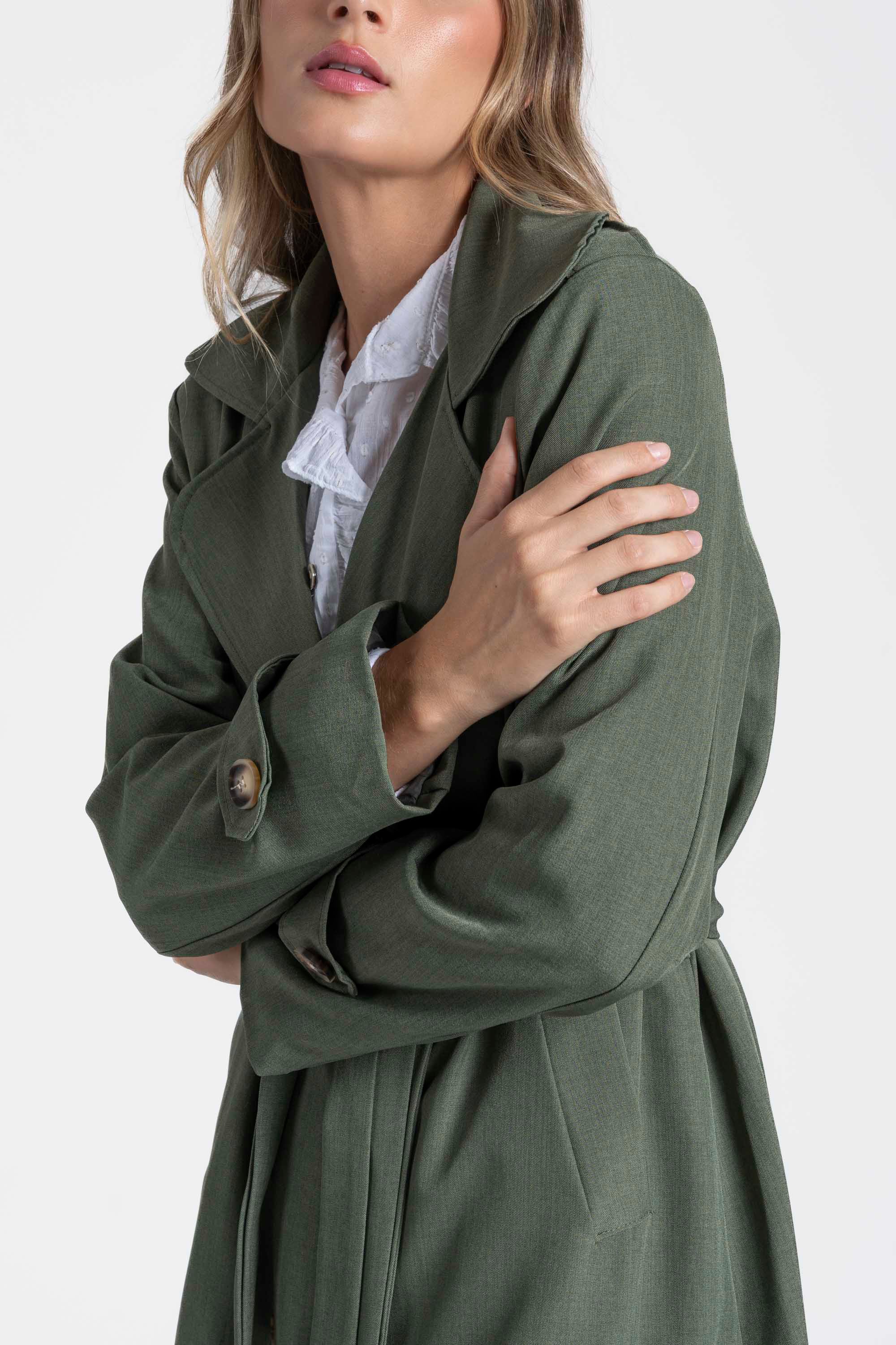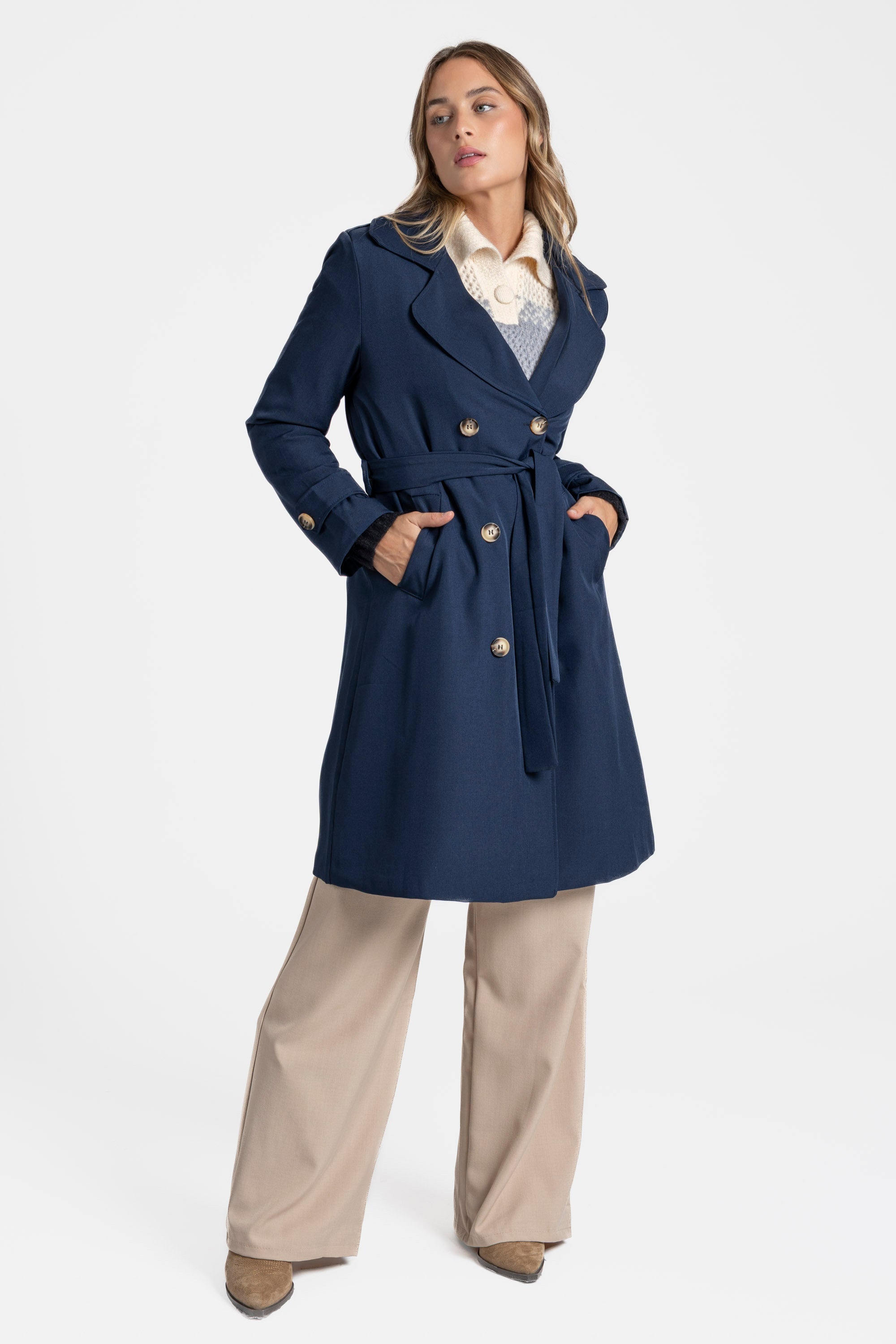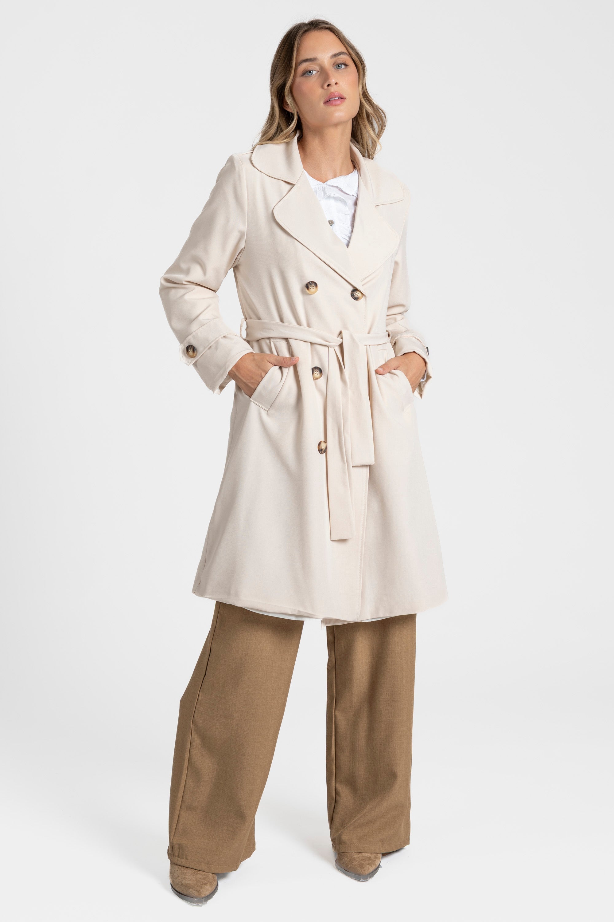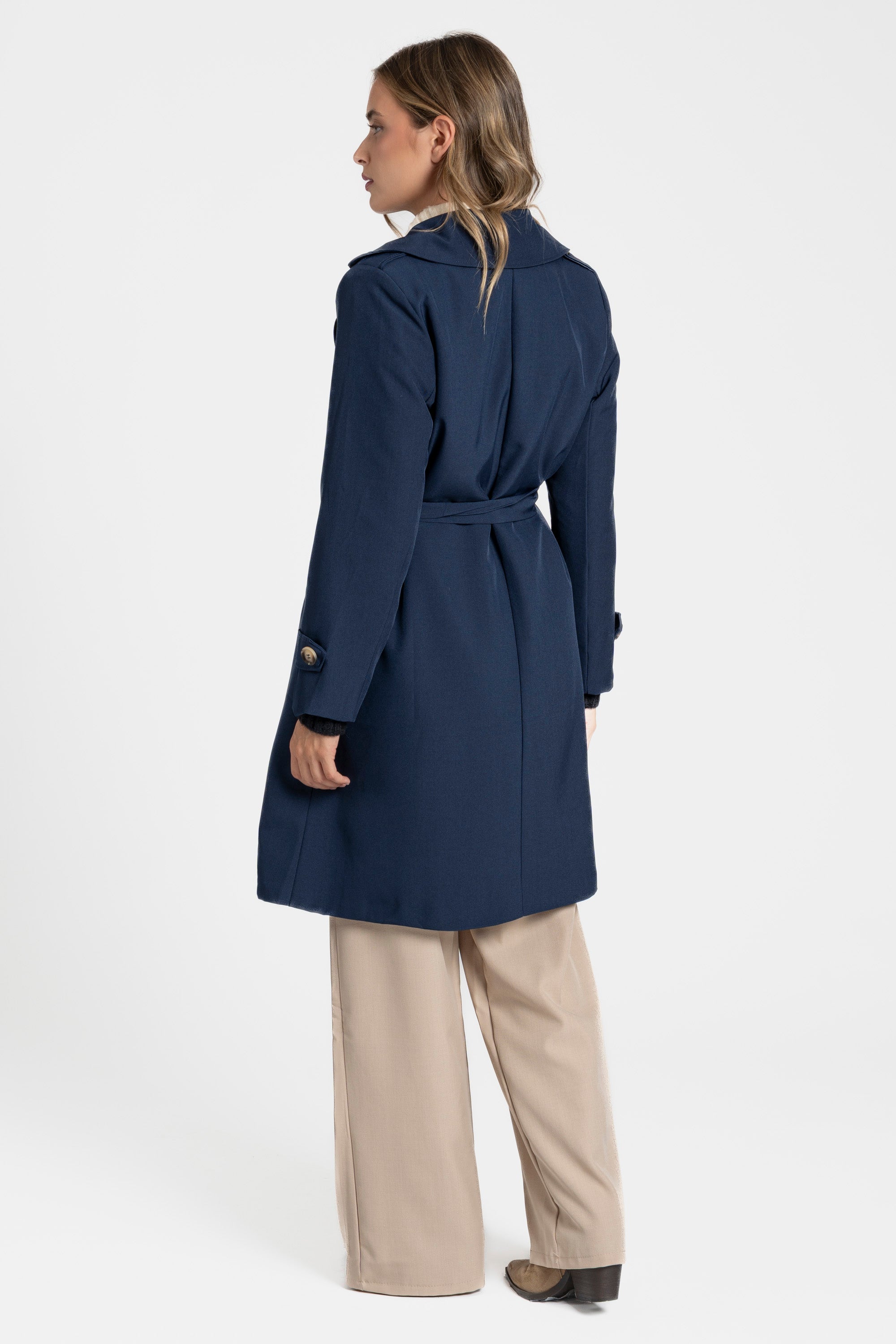 Trench de cuello solapa y manga larga. Bolsillos delanteros. Cierre frontal cruzado con botones y cinturón del mismo tejido. Composición: 95%...