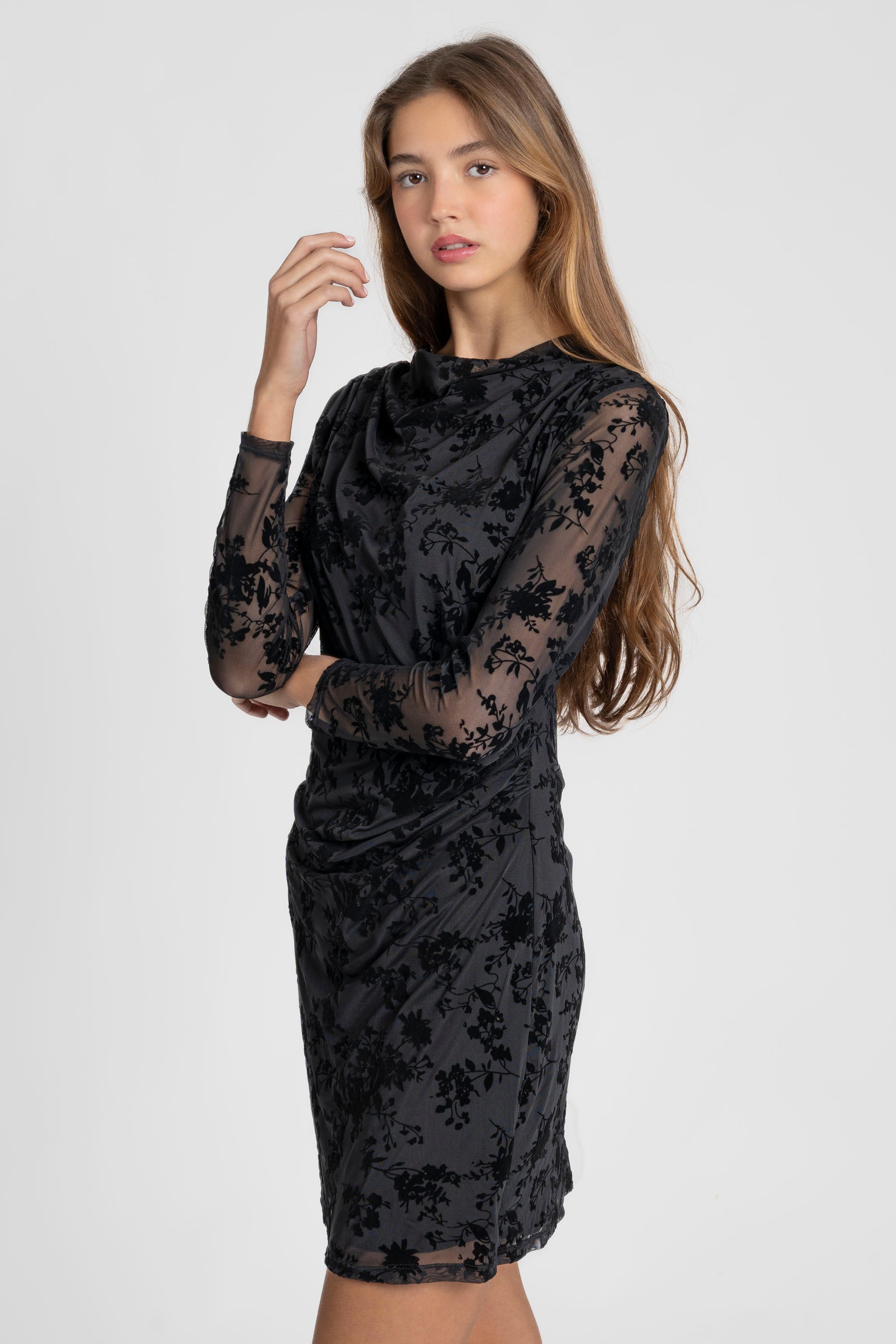 Tejido de encaje forrado. Cuello redondo. Manga larga. Diseño corto.Composición: 100% PoliésterHecho en Italia