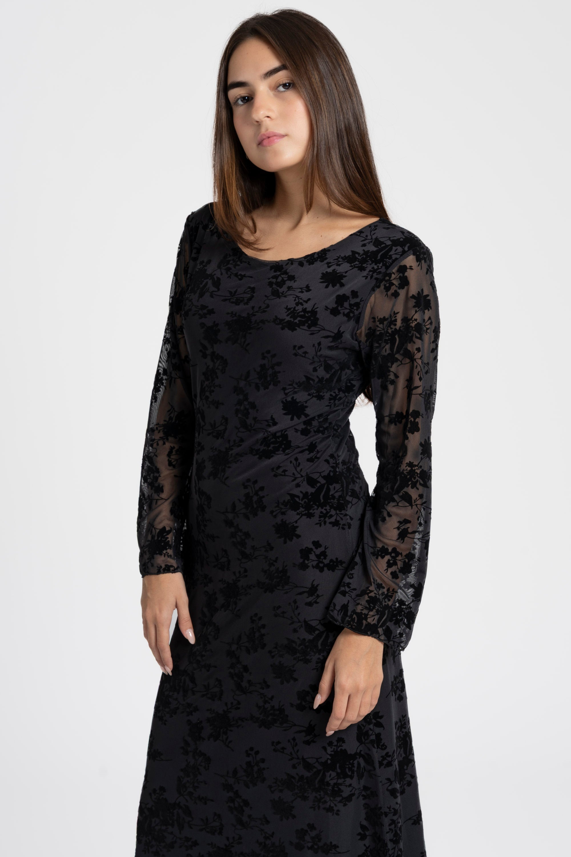 Tejido estampado. Cuello redondo. Manga larga. Tejido doble. Diseño largo. Composición: 93% Poliéster, 7% ElastanoHecho en Italia